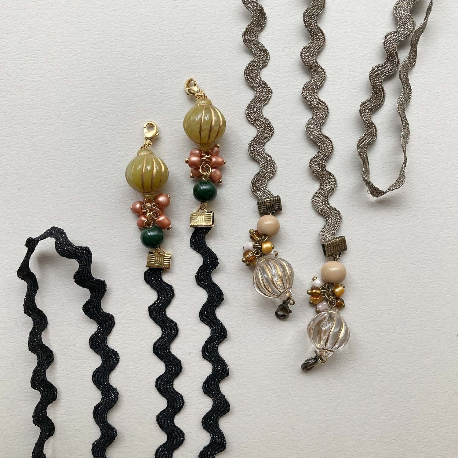 色とりどりのビーズがお顔まわりで揺れるマスクチェーン。
