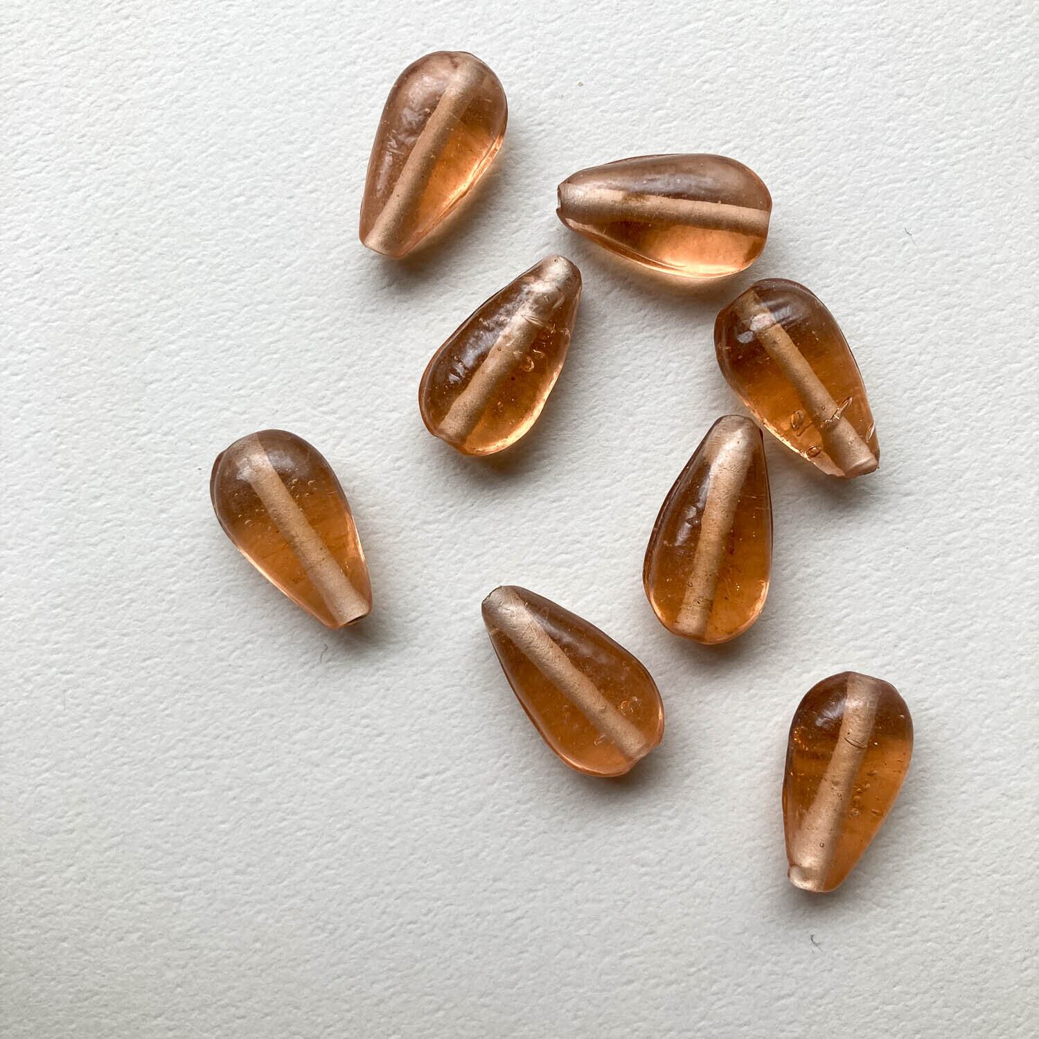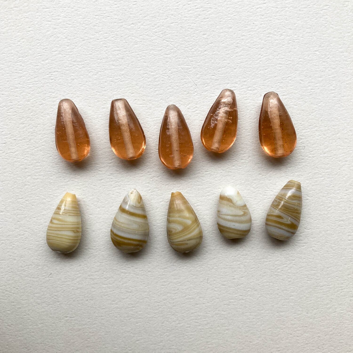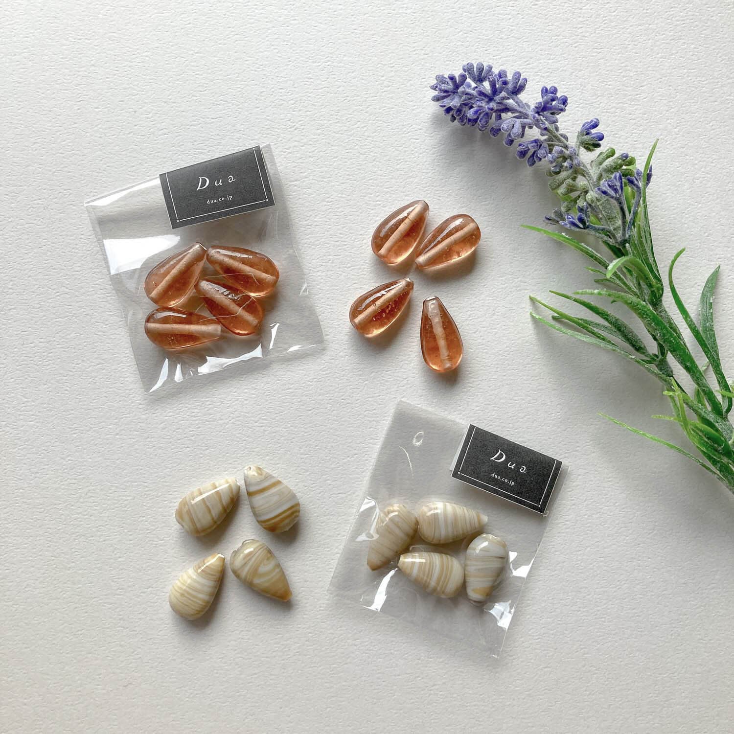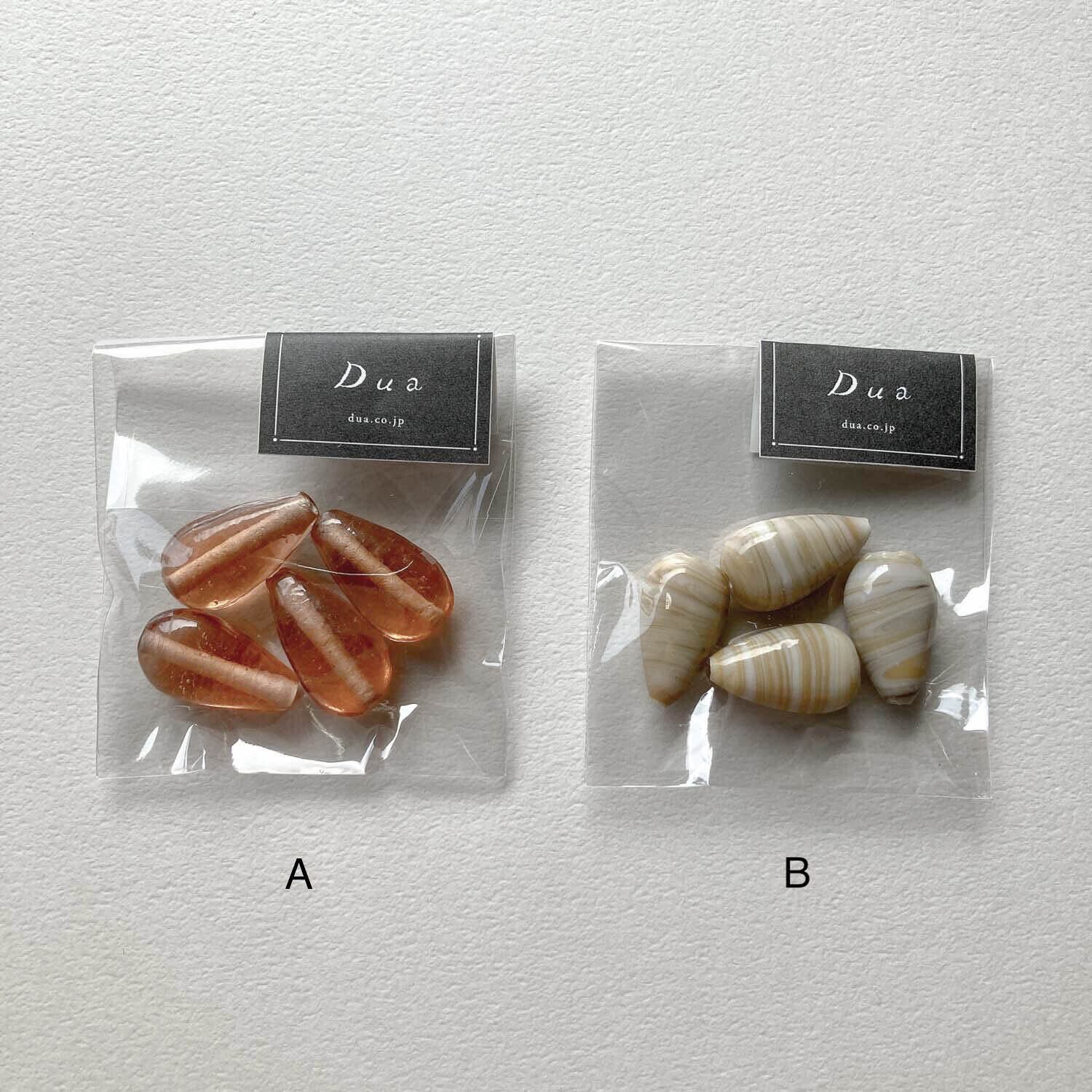 フラットしずく型のインドガラスビーズパック(4p)《薄ピンク・オンライン限定》