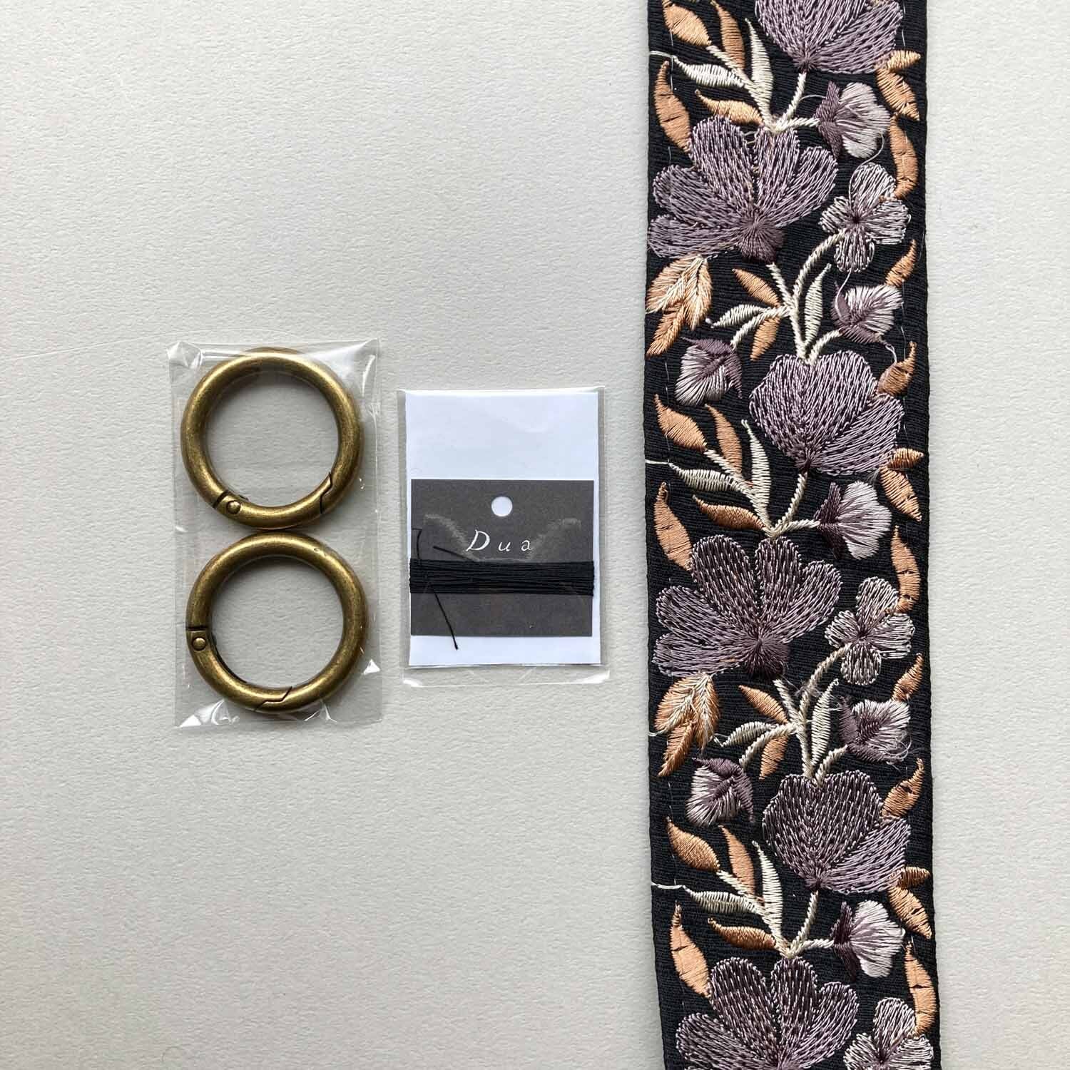 刺繍が素敵なインド刺繍リボンで作るショルダーストラップのキット。