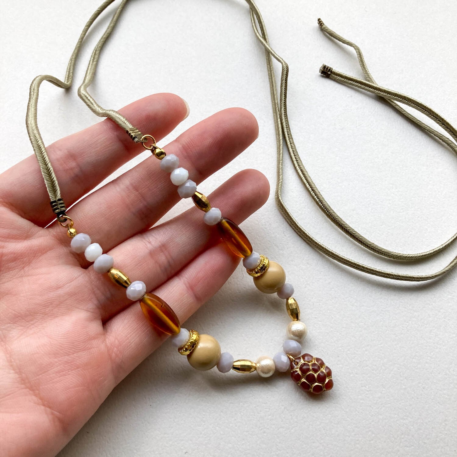 形やサイズも様々なビーズを組み合わせたネックレス。