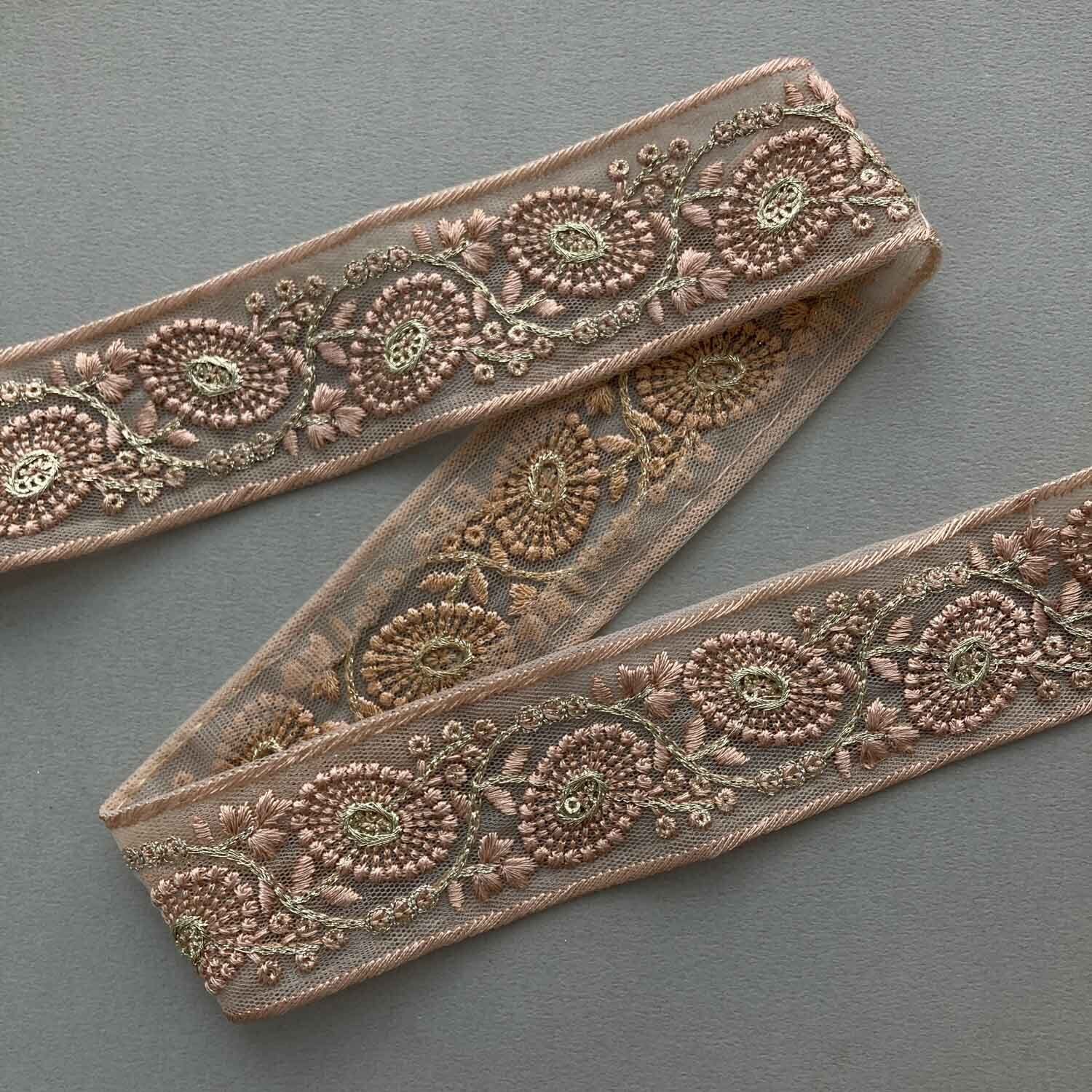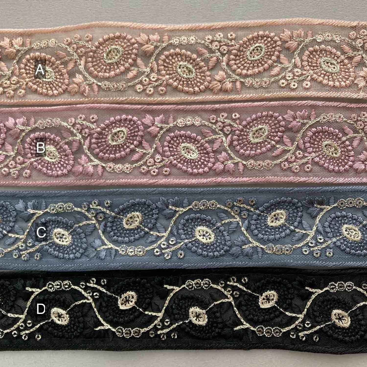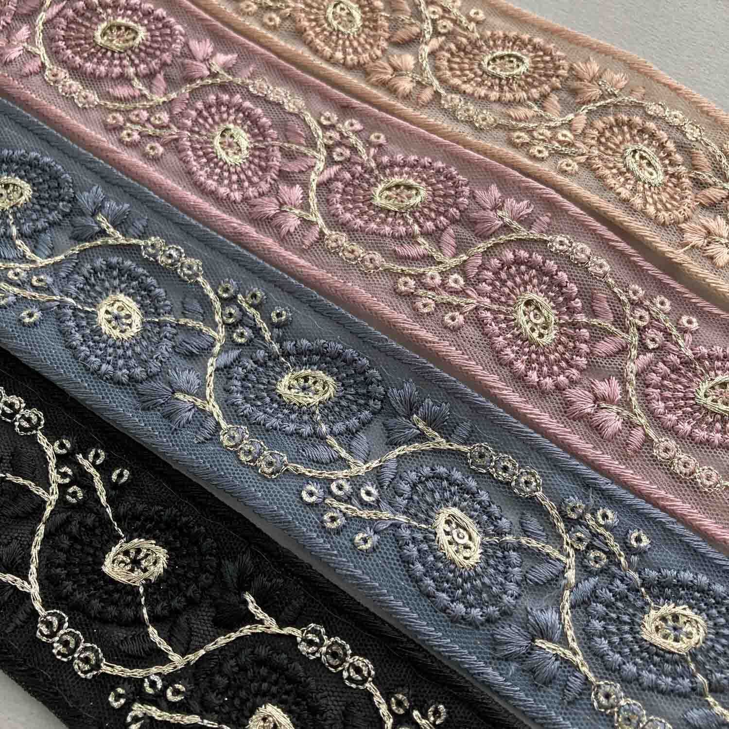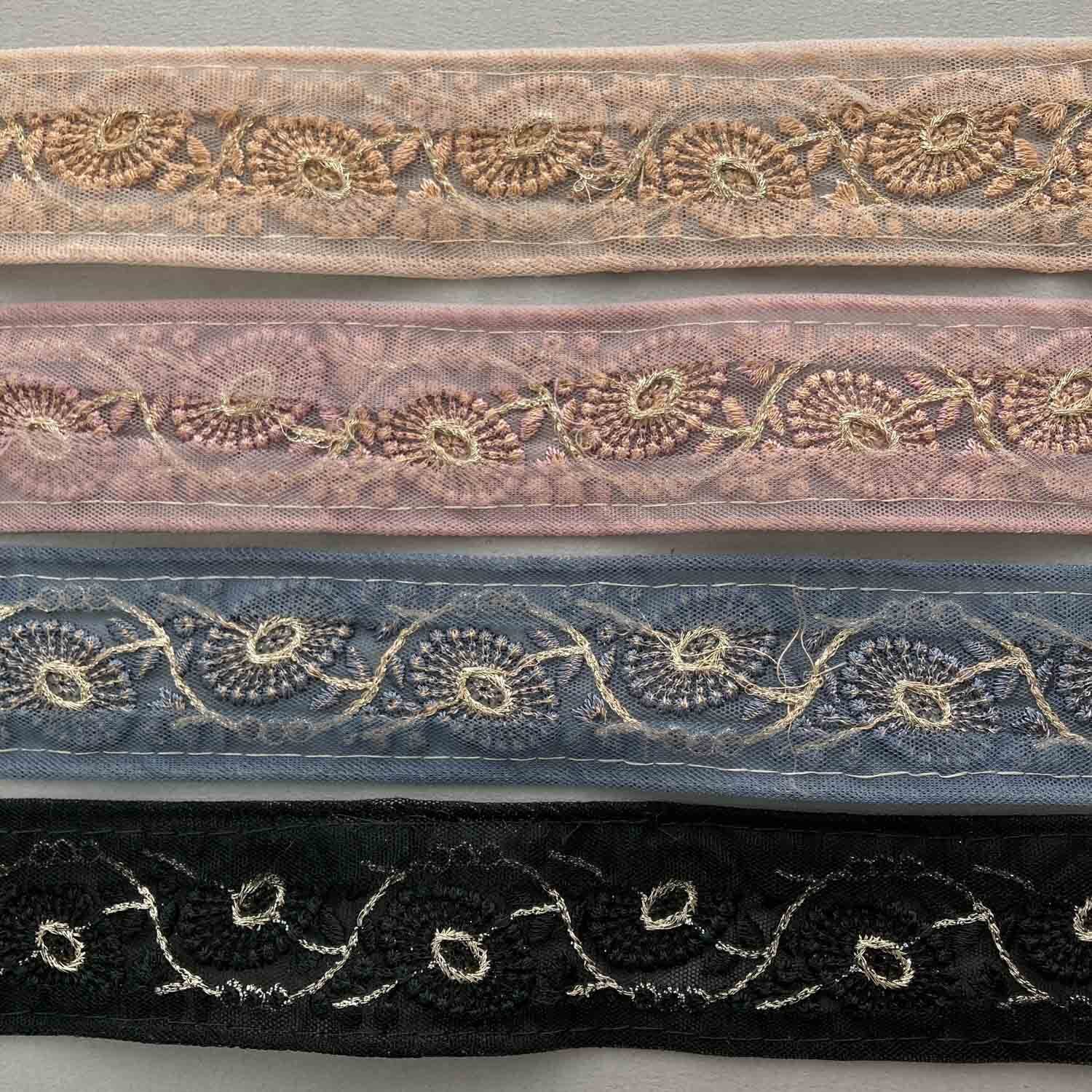アサガオ風ワントーン刺繍チュールレース(1mカット)