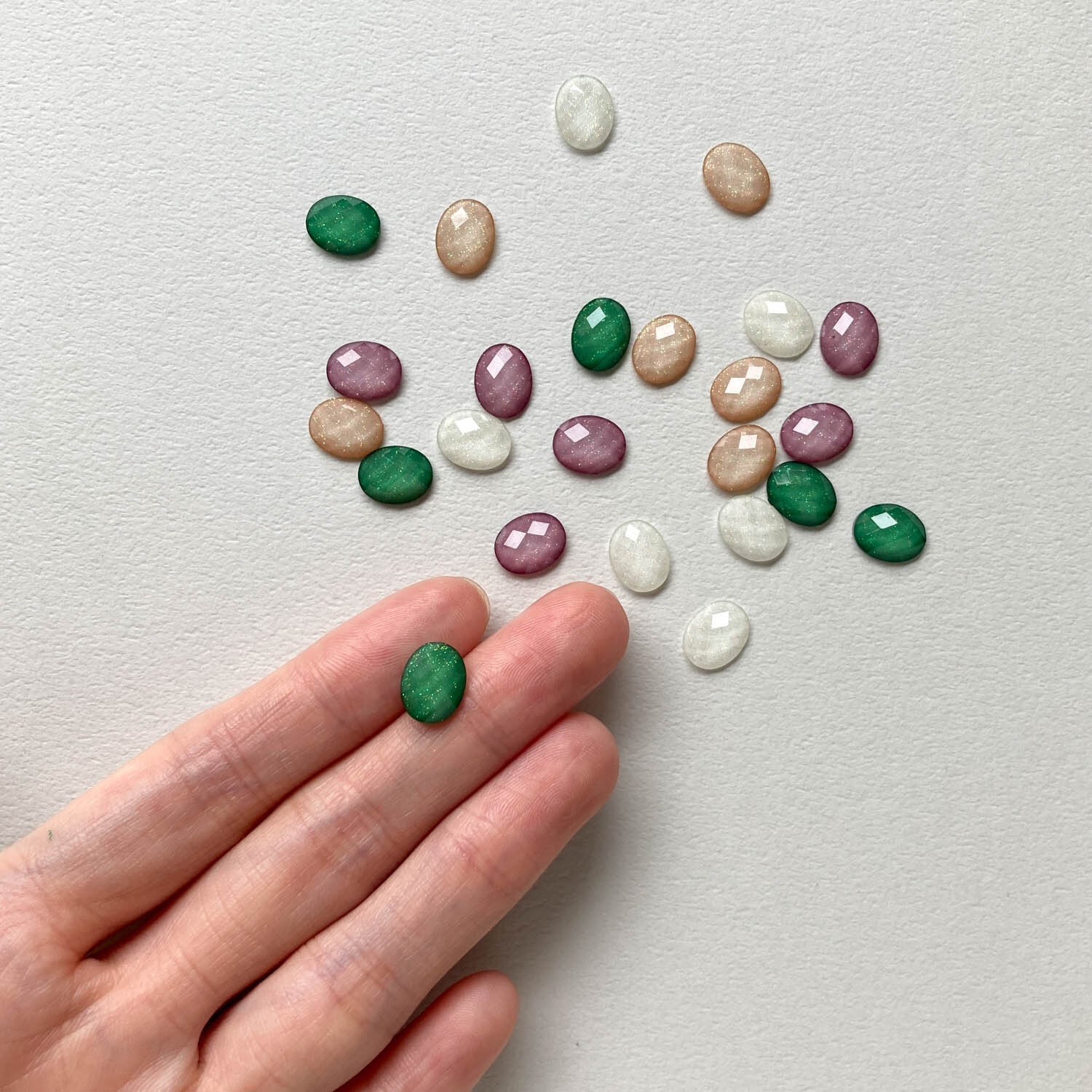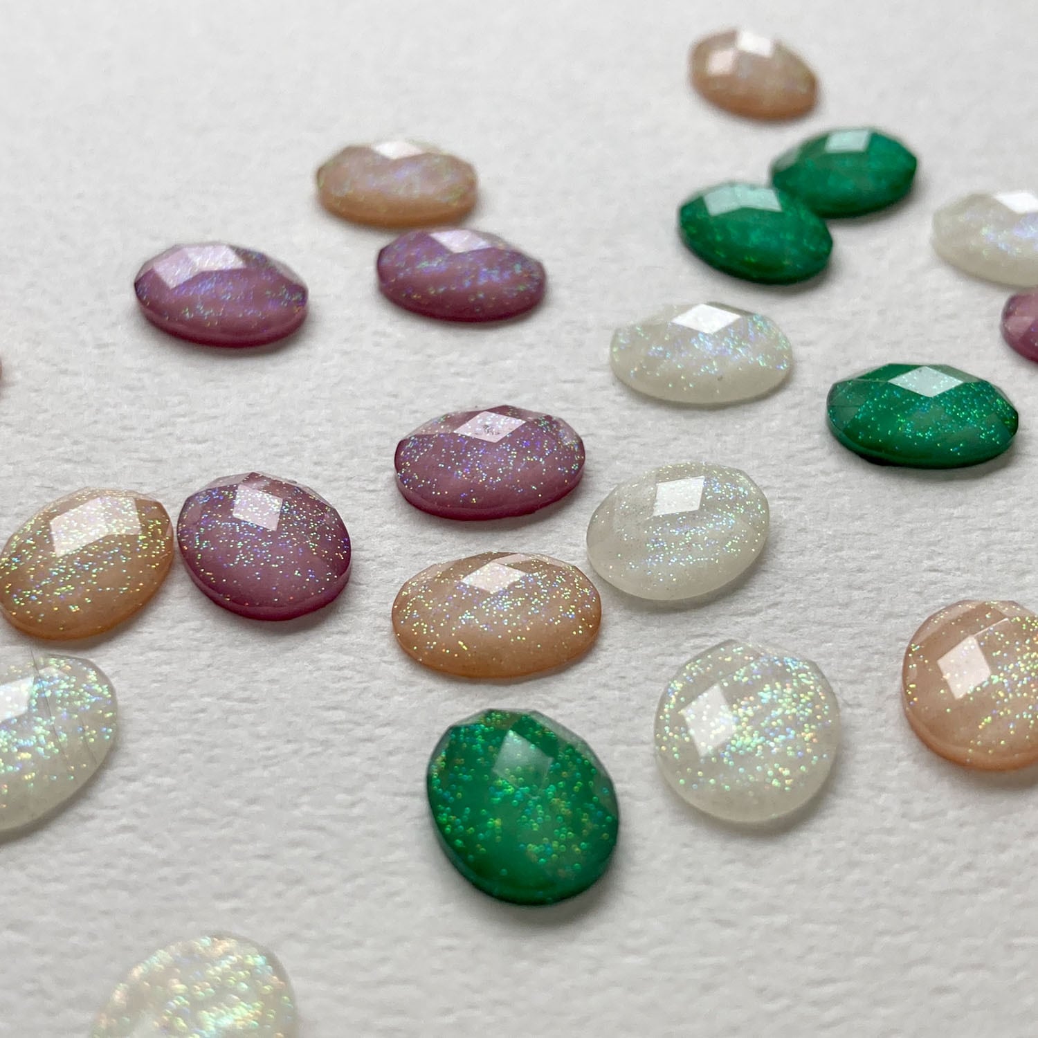 オーバルカット小ラメ入りカラーカボションパック(6p)