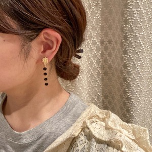 真鍮お花と黒カットビーズの〈ピアス/イヤリング〉