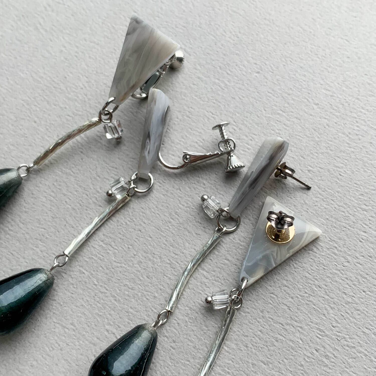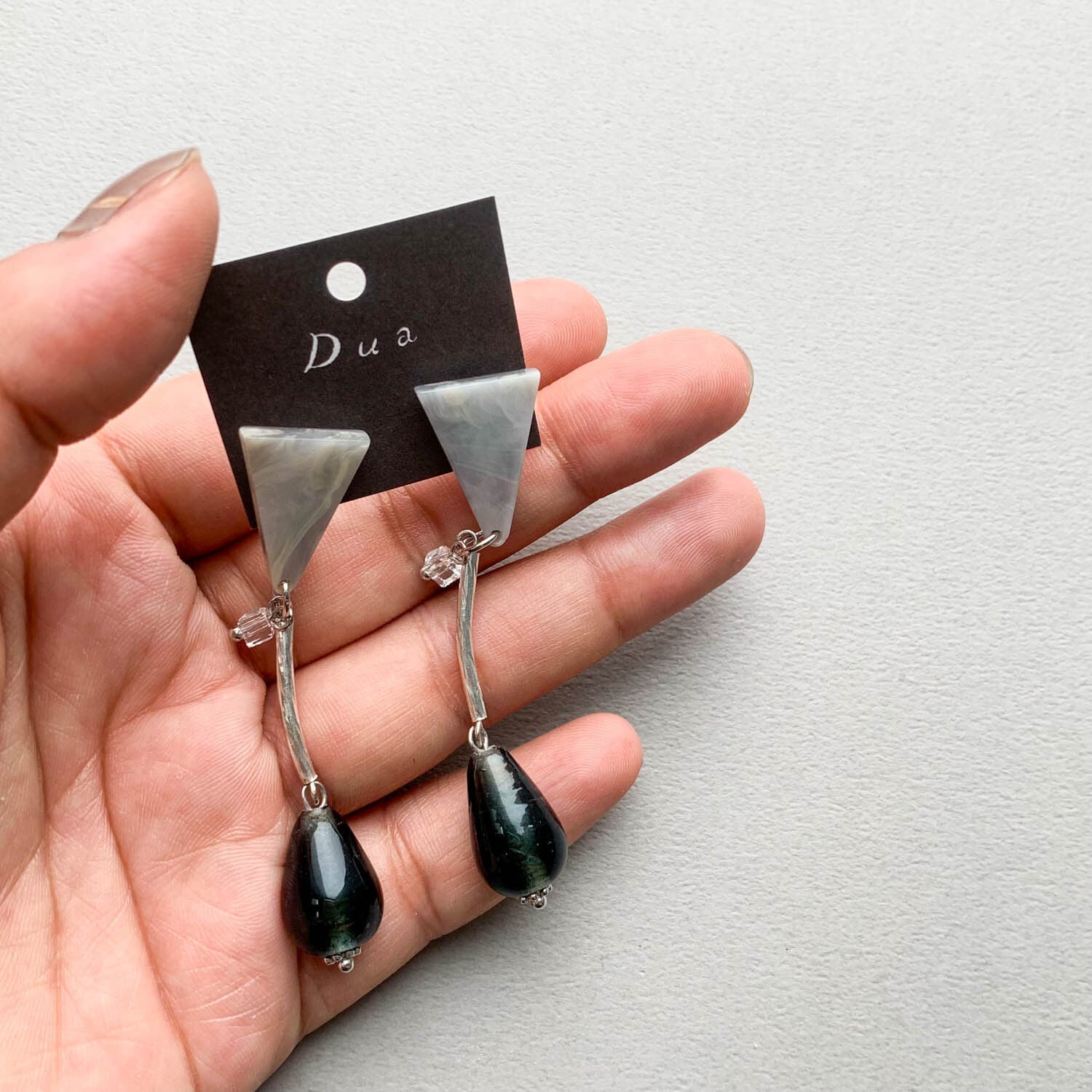 逆三角パーツとゆらゆらしずくビーズの〈ピアス/イヤリング〉