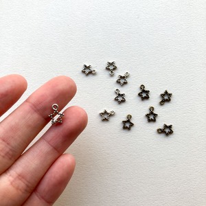 小さな星のチャーム。 ひとつぶら下げたシンプルな耳飾りや ネックレストップにおすすめです。 ■販売単位:1個 ■種類:Aシルバー、Bアンティークゴールド ■サイズ:A・B 約9.3×7×1.7mm ■素材:メタル ■色味、模様、形に個体差がございます。 ■素材の性質上、バリや欠け、スレ、傷がある場合がございます。 予めご了承ください。 ■商品コード:CH2303021