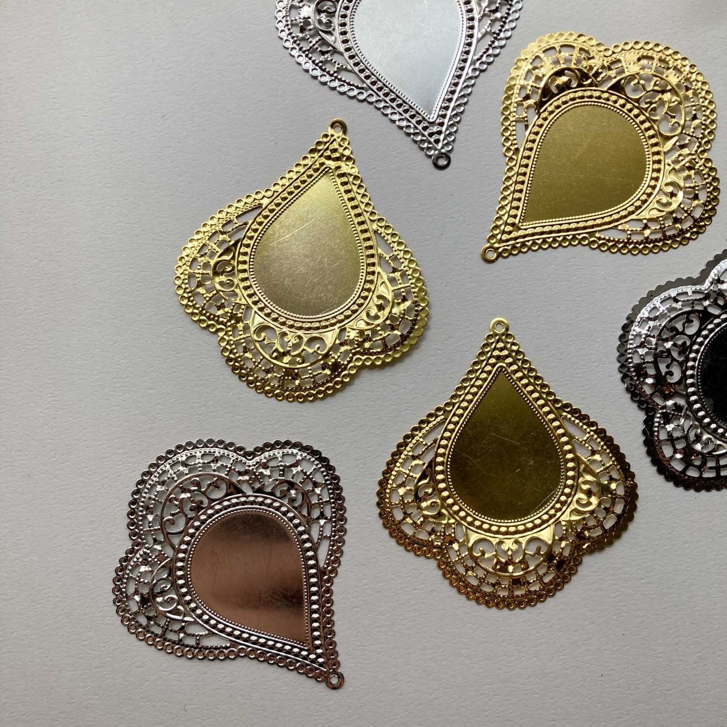 大ぶりでエレガントな印象の透かしプレートチャーム。