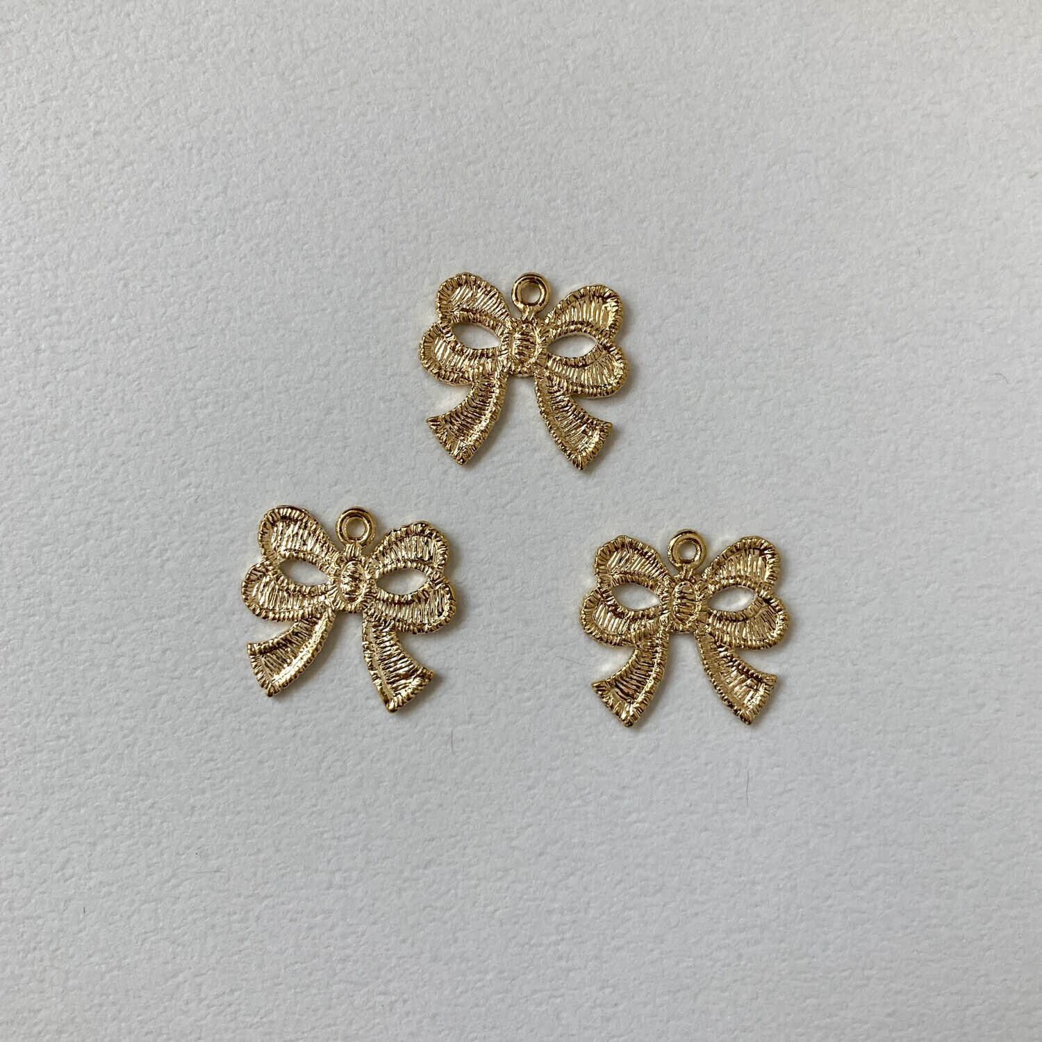 スレ模様が印象的なゴールドカラーのリボンチャーム。