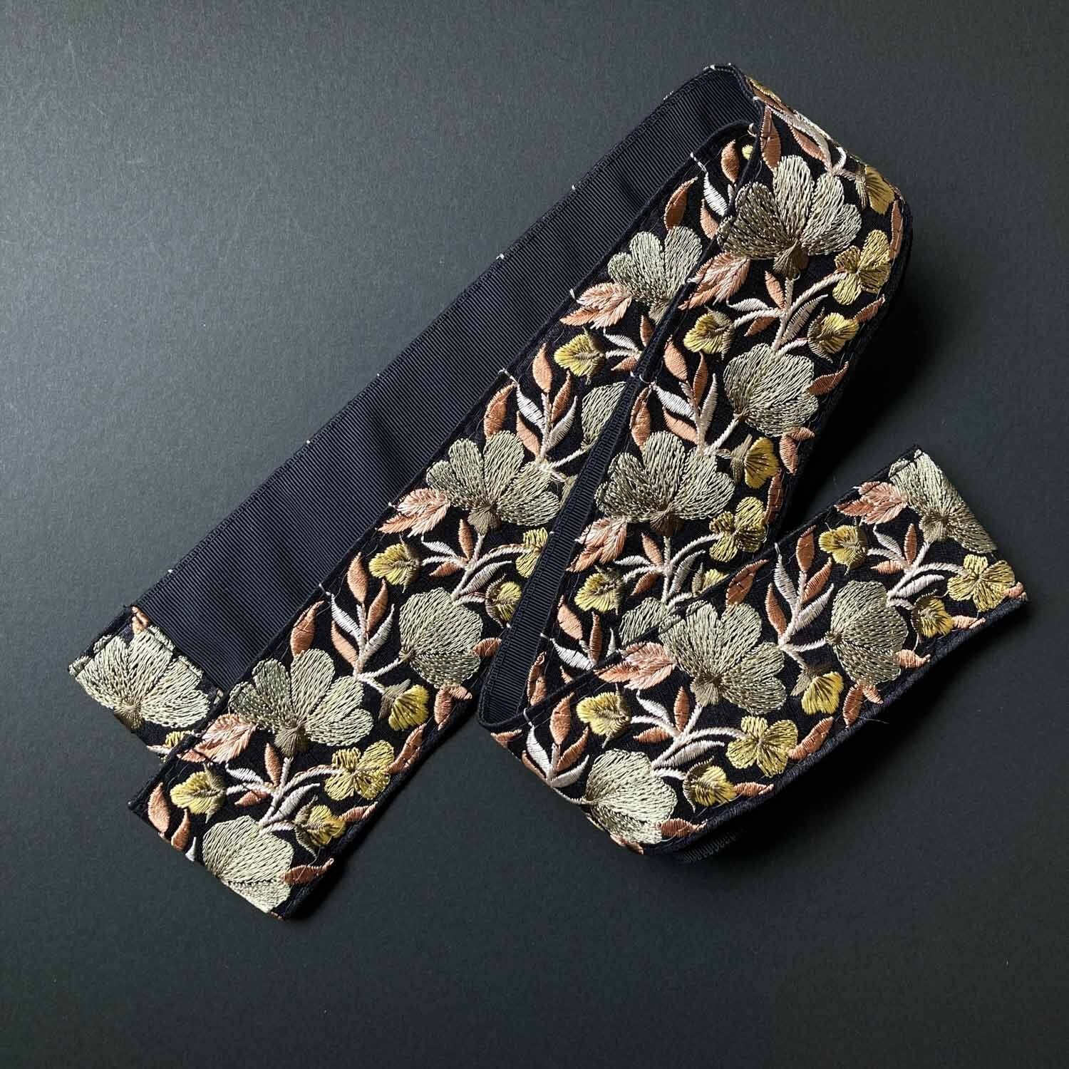 インド刺繍リボンに裏地をつけて、