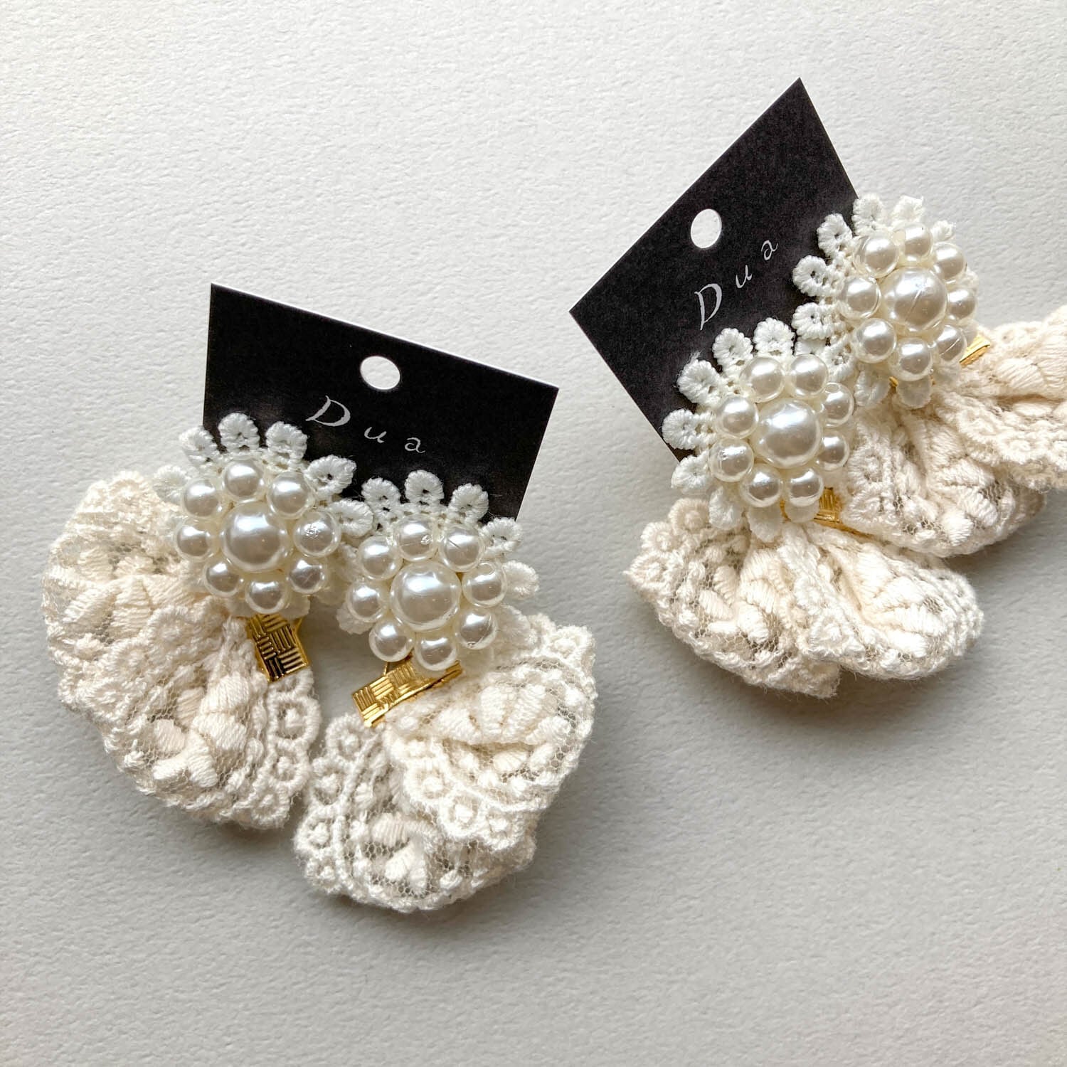 お花とレースのホワイト〈ピアス/イヤリング〉