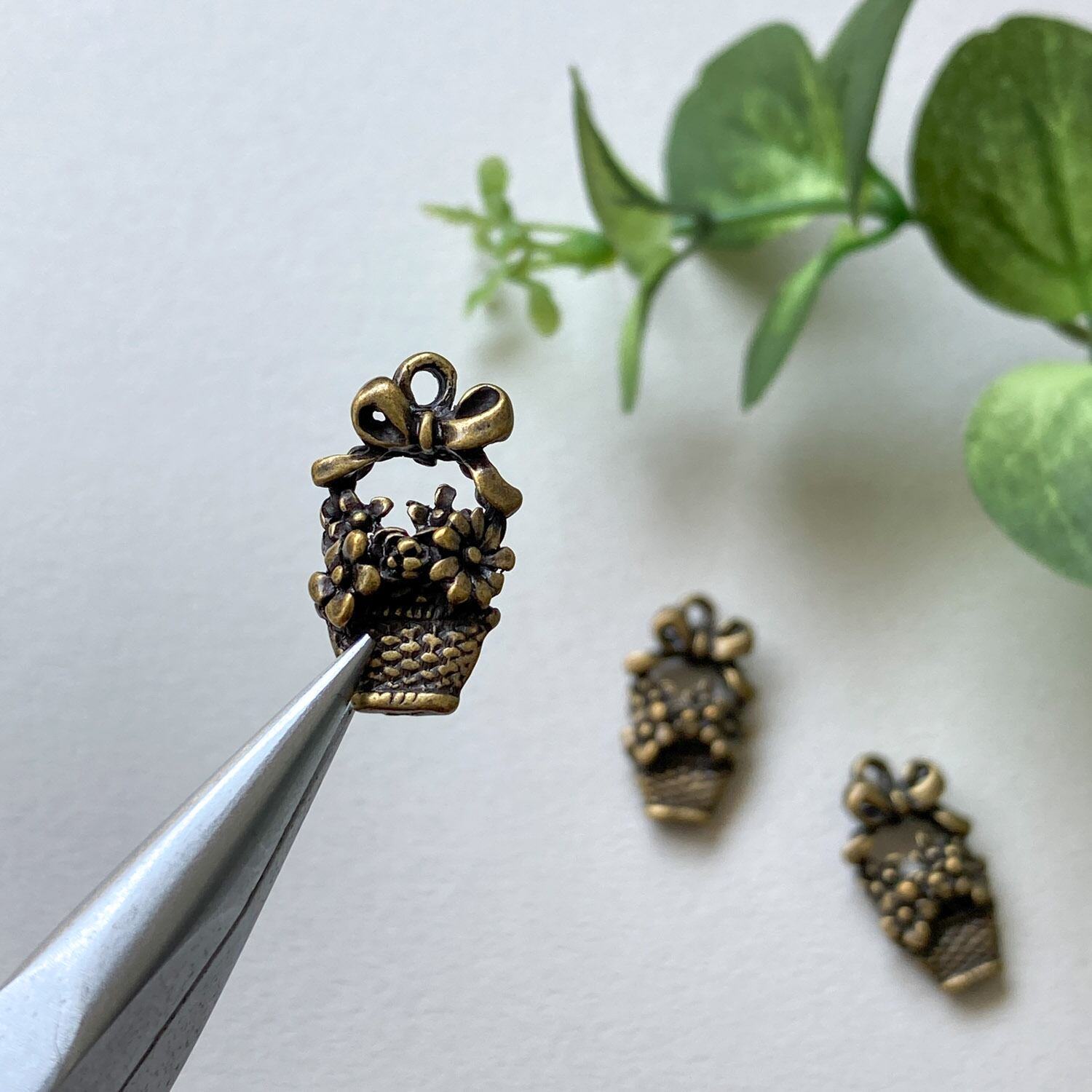 アンティーク風 お花の入ったバスケットチャーム