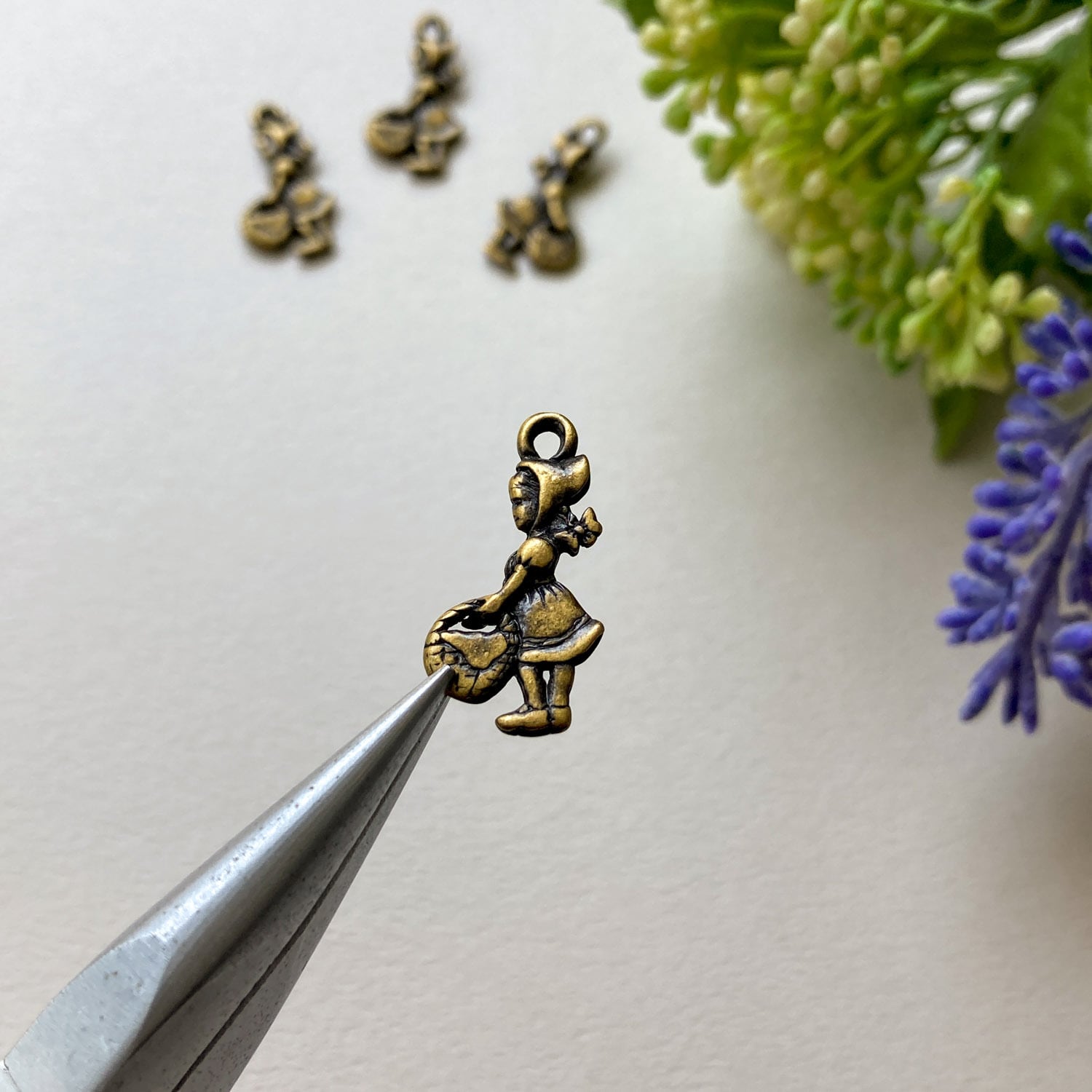 アンティーク風 カゴを持つずきんの女の子チャーム