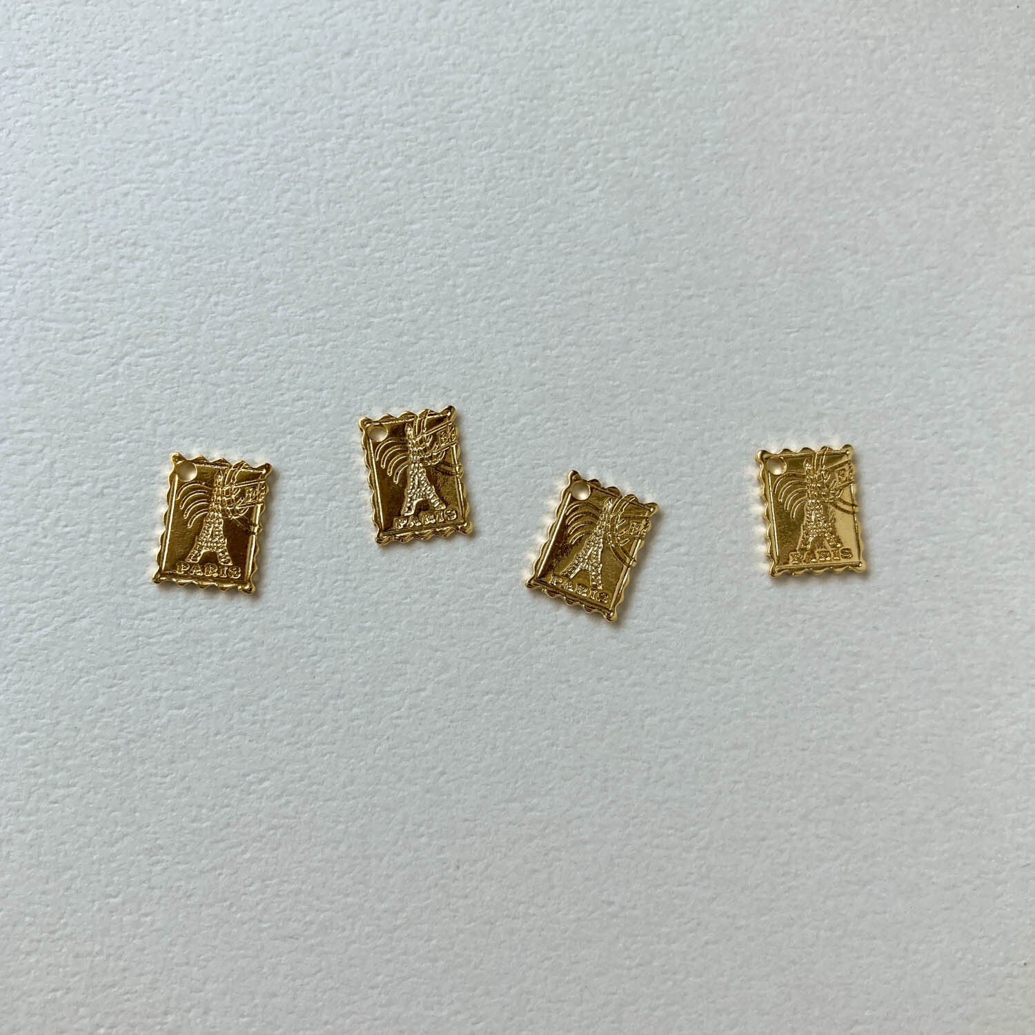 エッフェル塔の切手モチーフのメタルチャーム。 ネックレストップなどにおすすめなミニサイズです。 ■販売単位:1個 ■種類:ゴールド ■サイズ:約12×9×1mm ■素材:メタル ■色味や形に個体差がございます。 ■製造工程上のバリやへこみ、スレ、傷がある場合がございます。 ■真鍮製のため経年変化により変色いたします。 ■シミのような変色、汚れがある場合がございます。 予めご了承ください。 ■商品コード:CH2303077