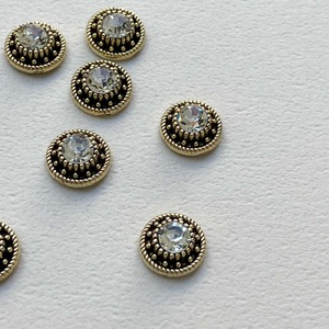 ビジューがきらりと輝くメタルカボション。 つぶつぶの縁取りが印象的でシックです。 指輪や耳飾りにもおすすめなサイズ感です。 ■販売単位:1個 ■種類:ゴールドカラー ■サイズ:約10×10×5mm ■素材:メタル、ガラス ■色味や形に個体差がございます。 ■ビジューやパールは位置のズレや、スレ、傷がある場合がございます。 予めご了承ください。 ■商品コード:CA2304019 価格変更 2025/3