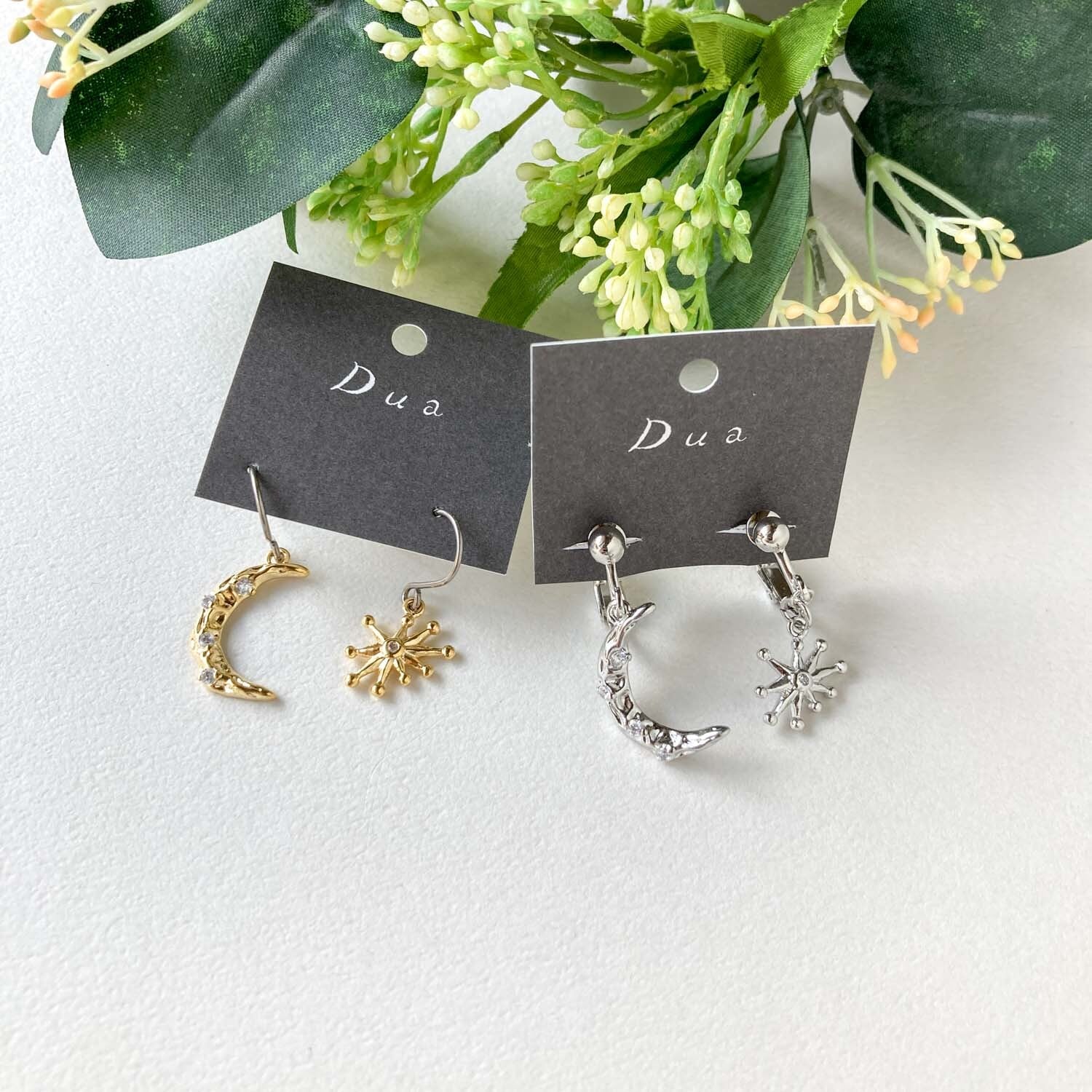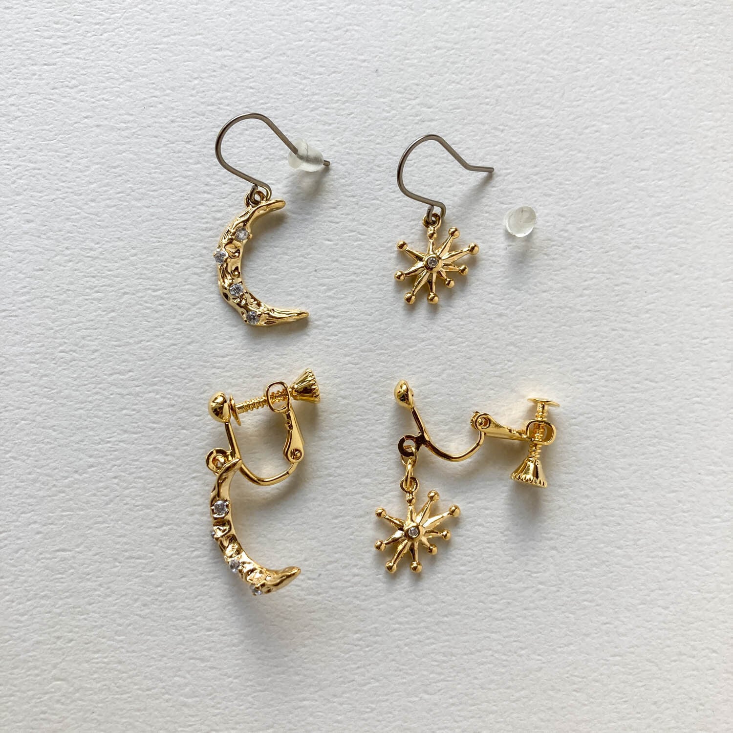 クリアビジューきらめく月と星の〈ピアス/イヤリング〉