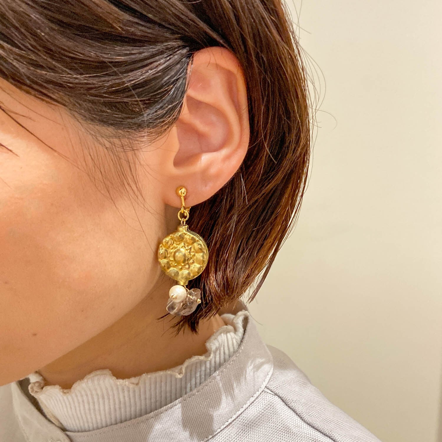 ストーンやコットンパールをじゃらっと下げてみました。