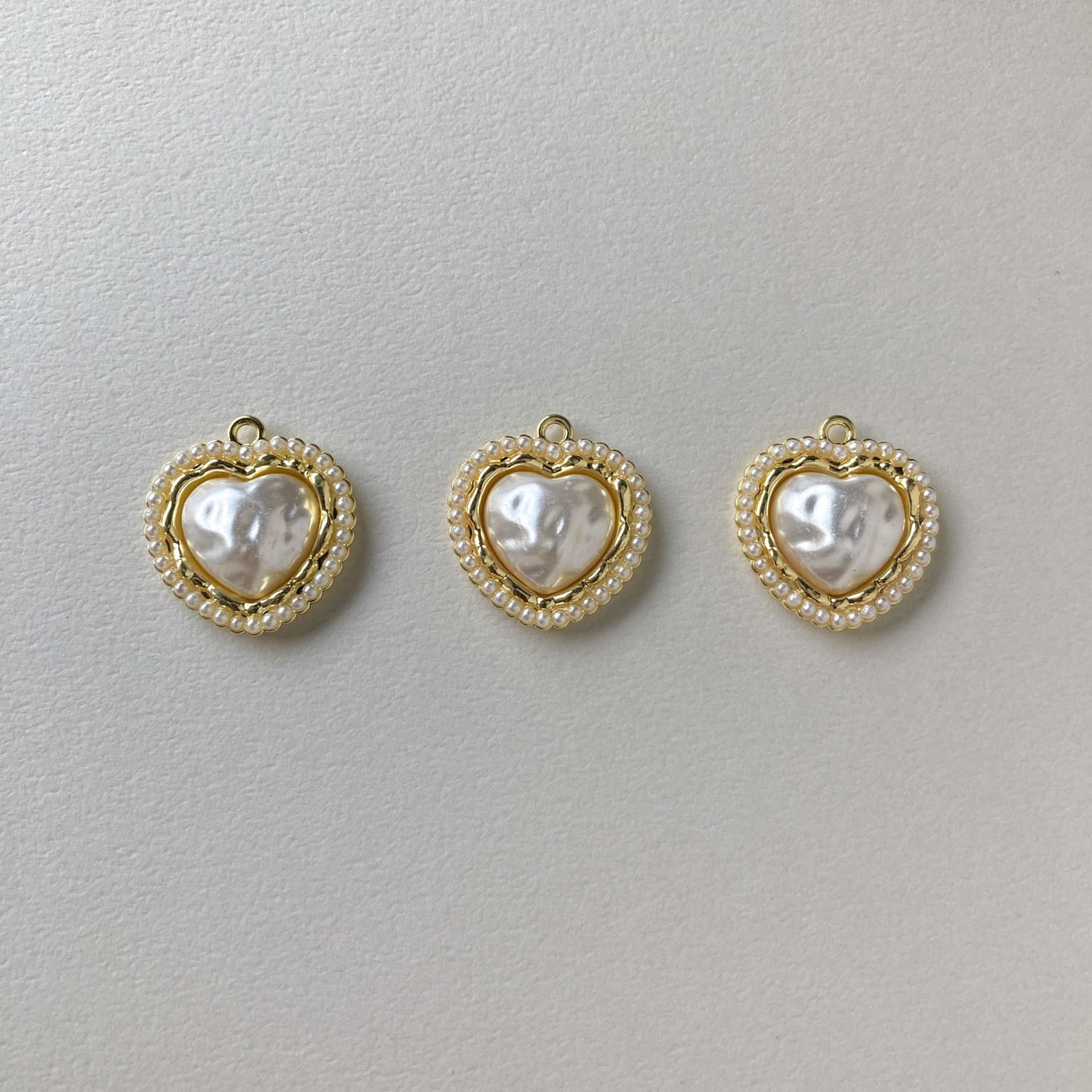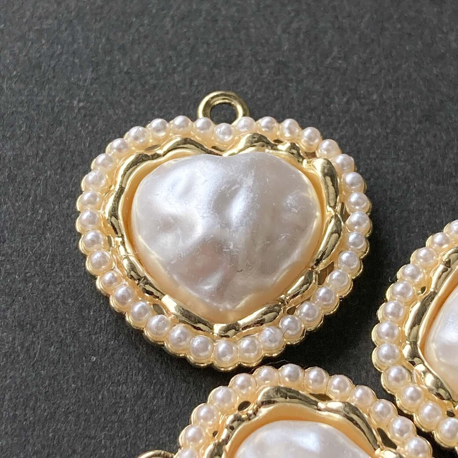 パール縁取りの凸凹ハートカボション付きチャーム