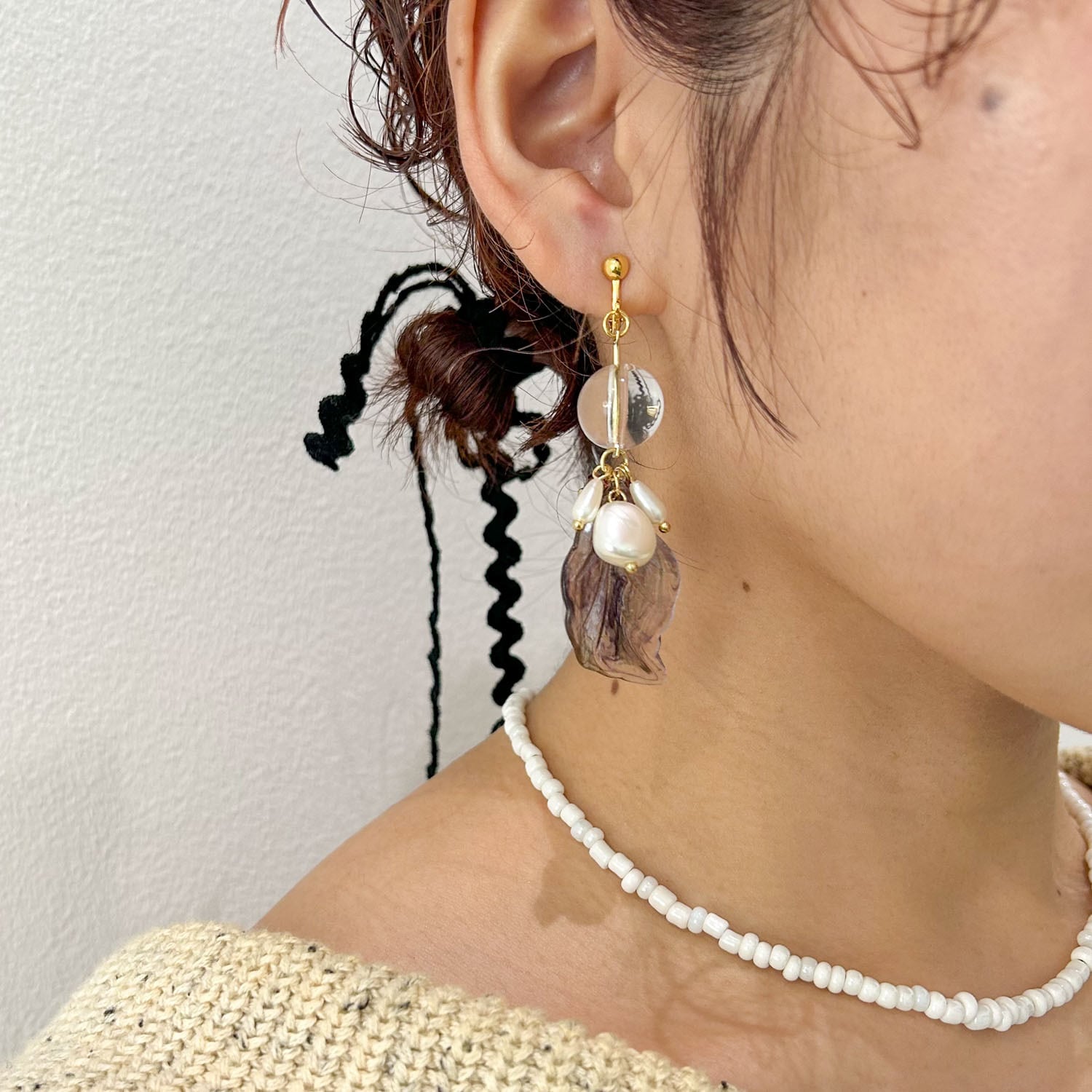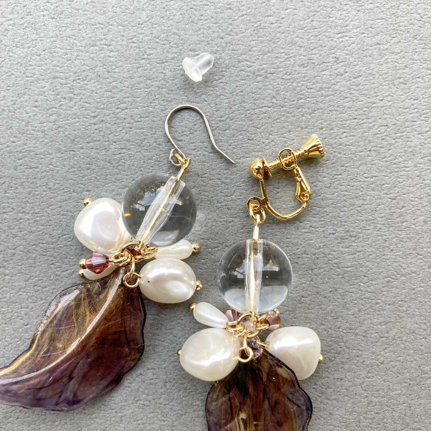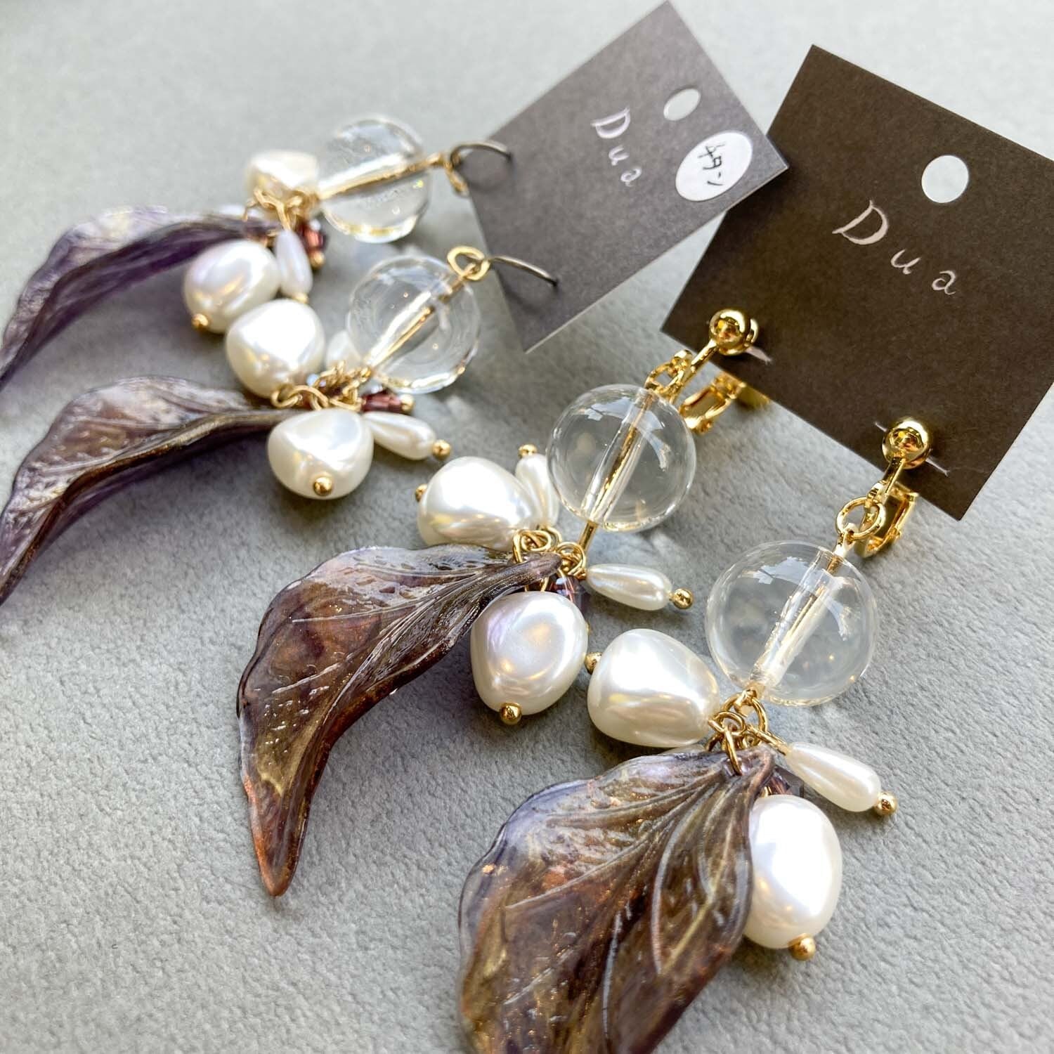 クリアビーズとリーフの〈ピアス/イヤリング〉