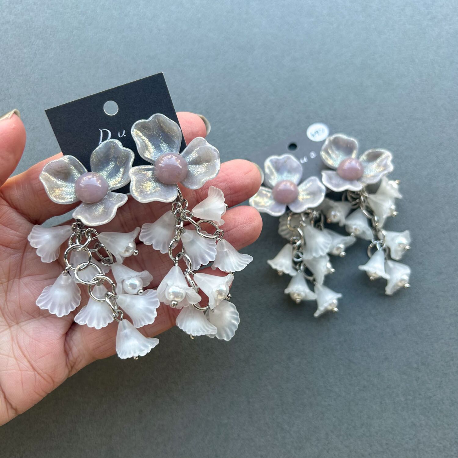 お花カボションから白ユリがたっぷりぶらさがったボリュームたっぷりな耳飾り。