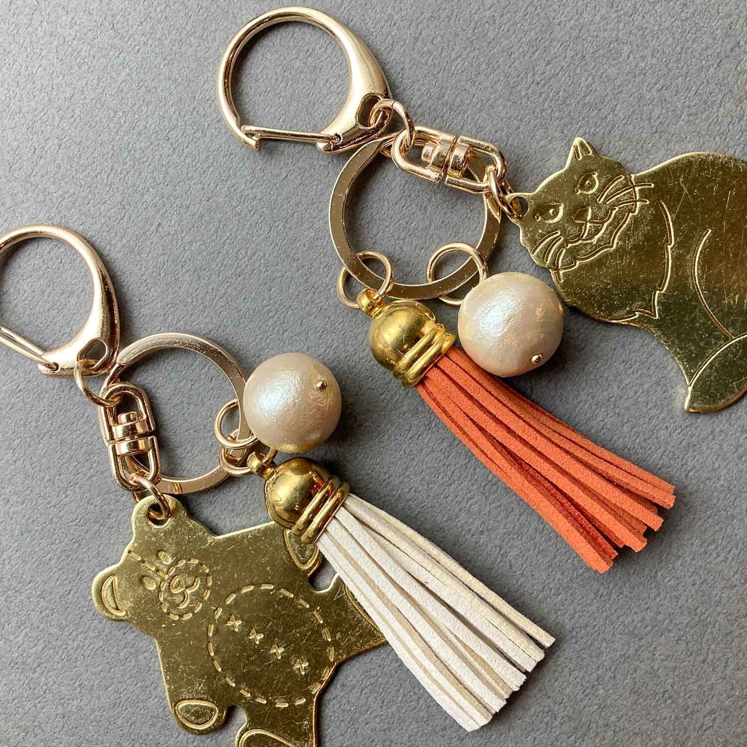 真鍮アニマルとスエードタッセルのバッグチャーム