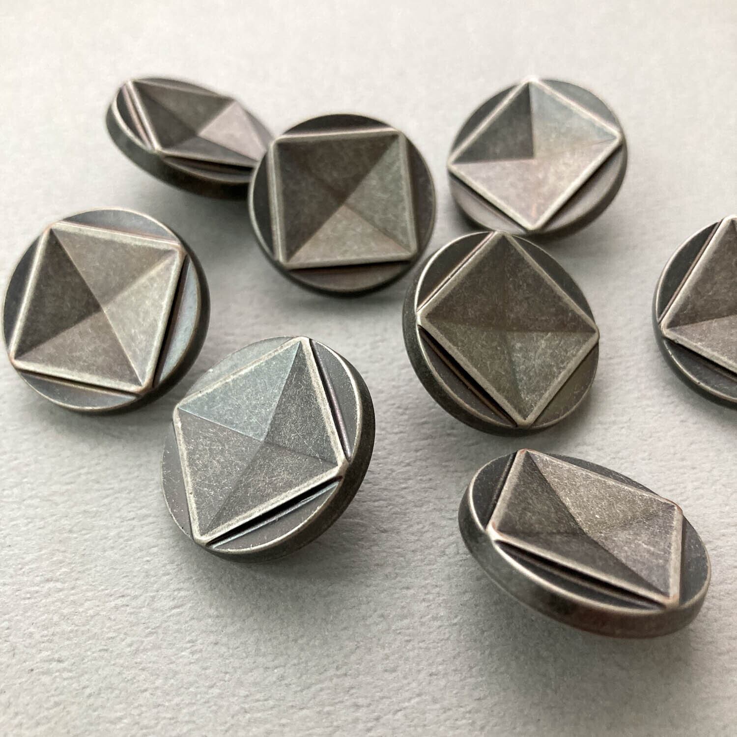 ヴィンテージ調のシルバーカラーがシックなボタン。
