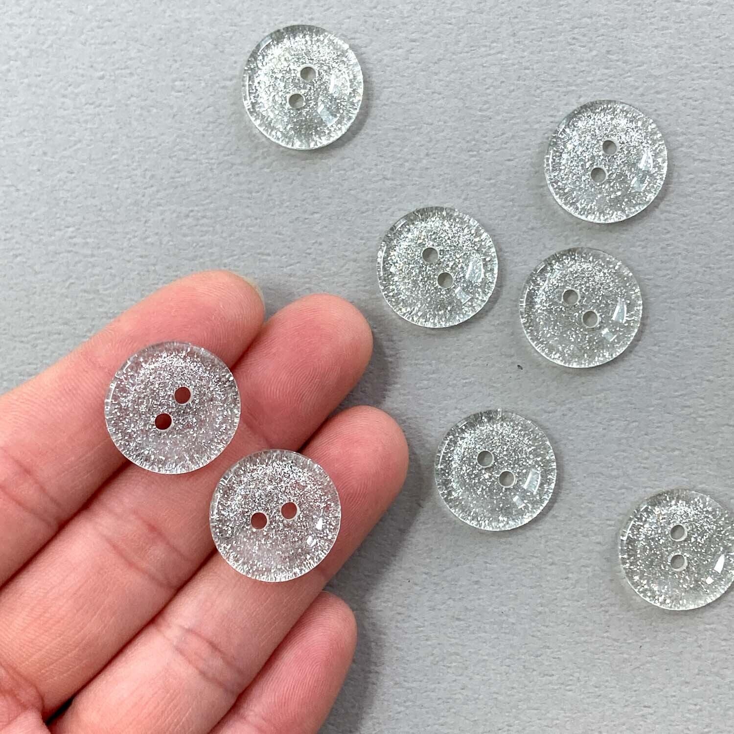 〈最終入荷〉ラメシルバーの2つ穴ボタンS(17.5mm)