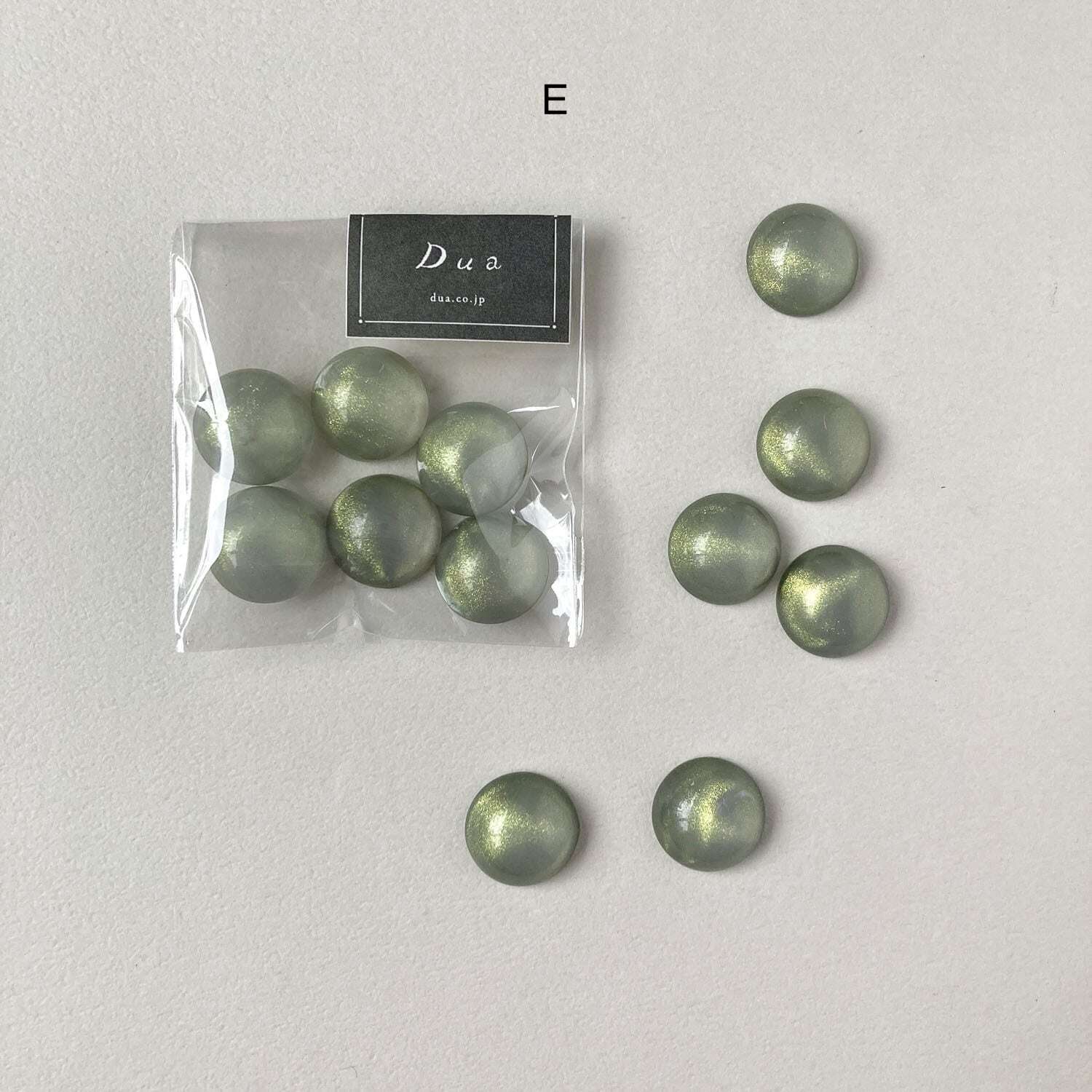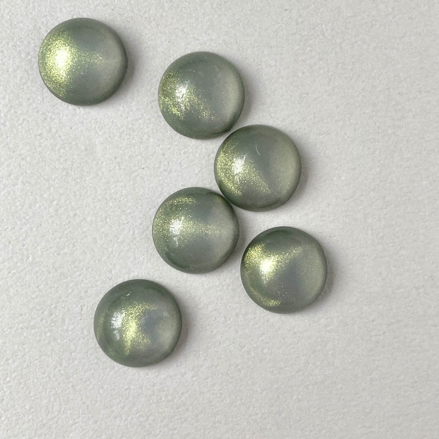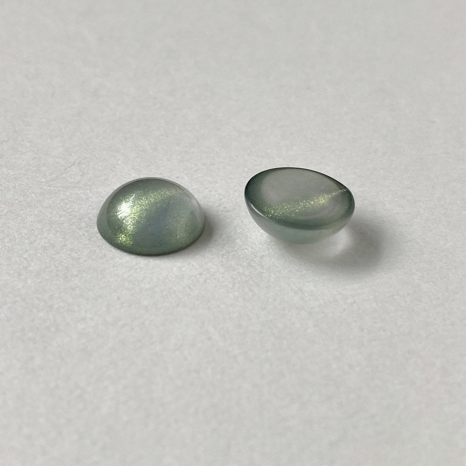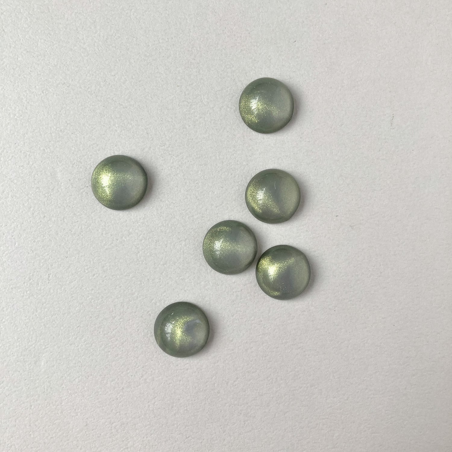 ツヤっとしたクリアカラーにラメが入ったラウンドカボションです。