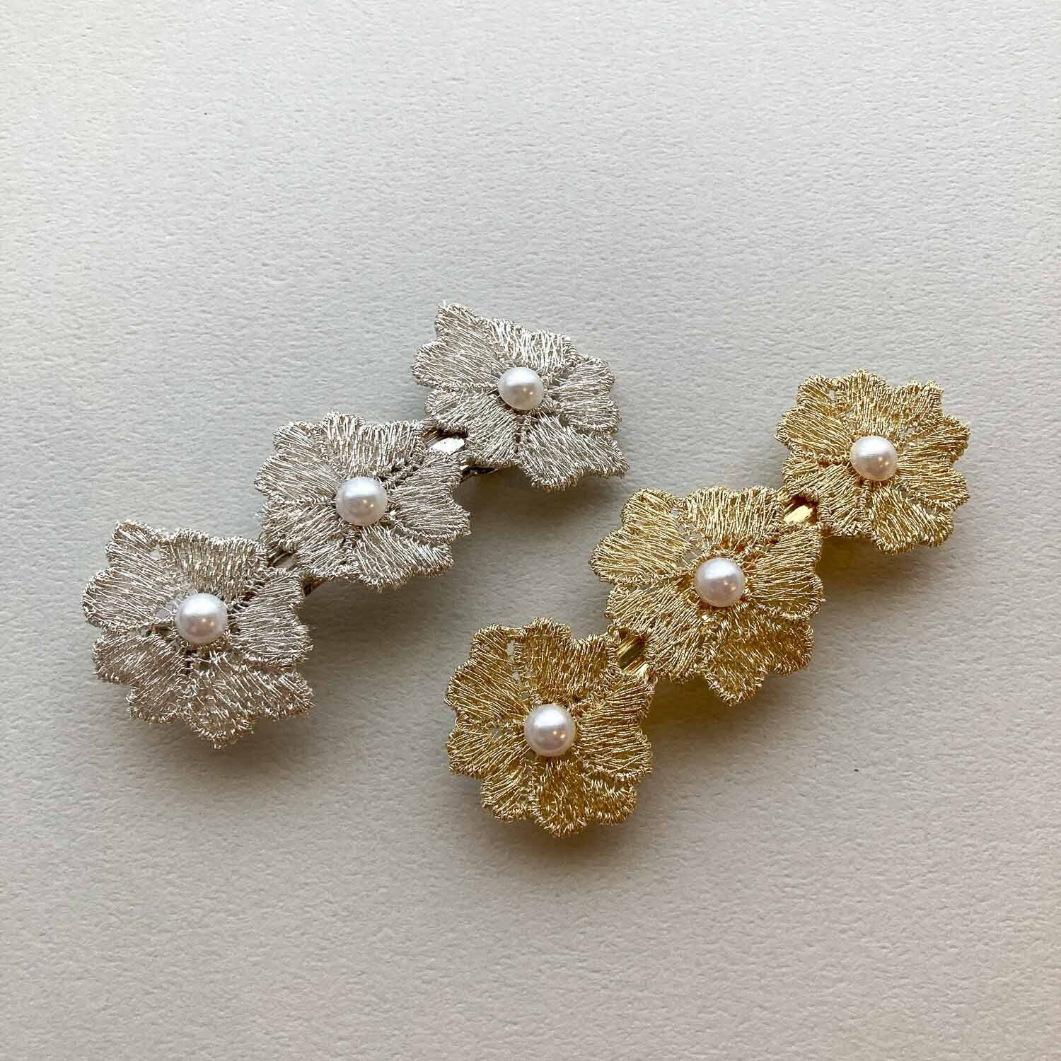 繊細なレースの中心にパールがデザインされたバレッタ。