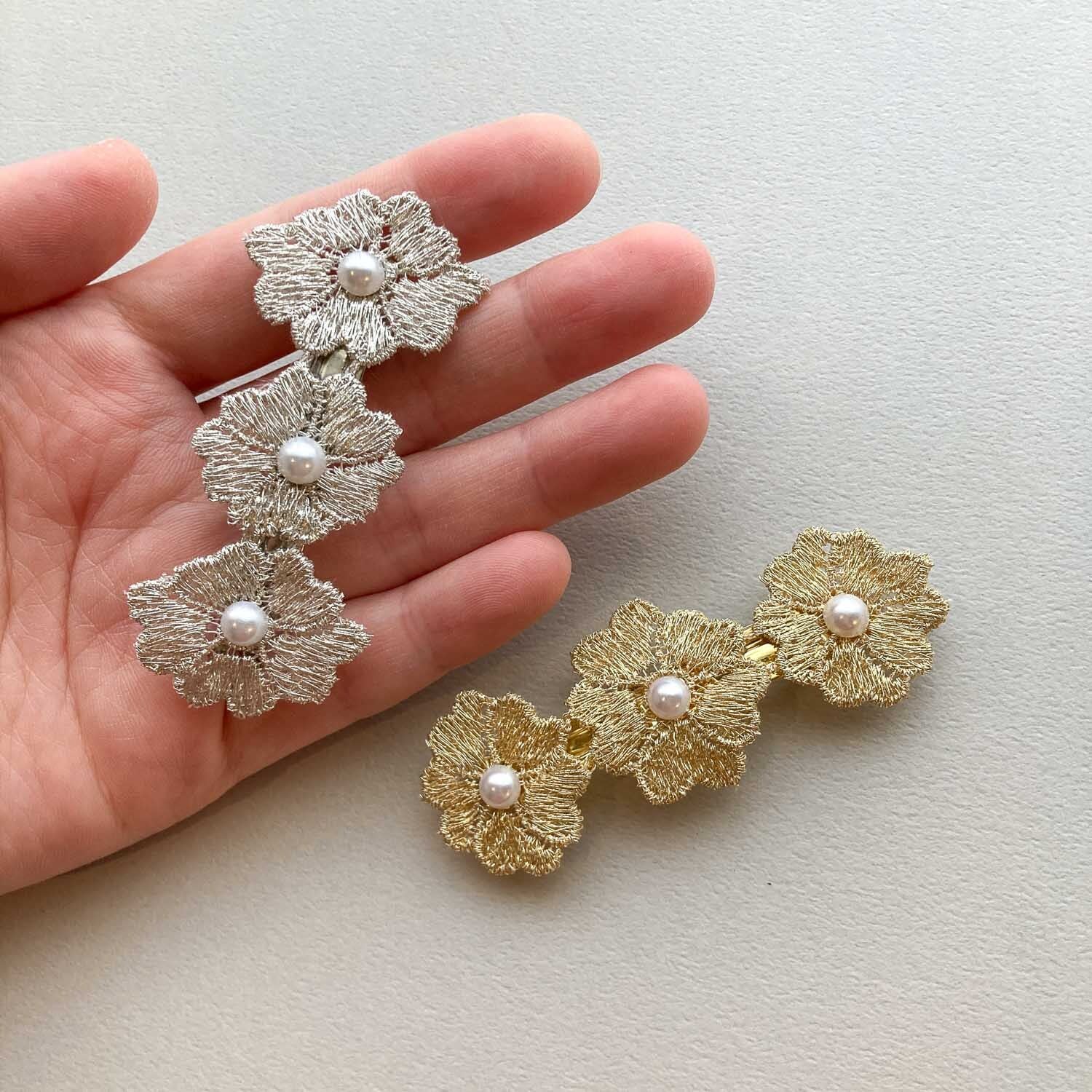 〈再入荷〉パールのせ3枚花びらパーツ¥330