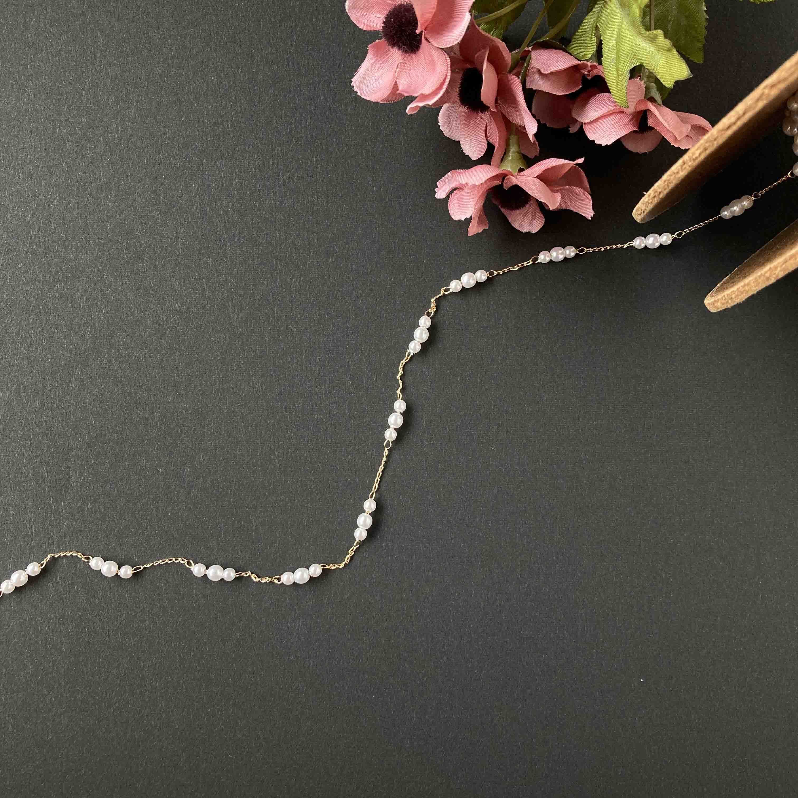 小さなパールビーズが連なった華奢なデザインチェーン。