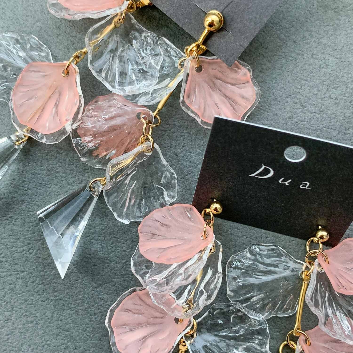 ガーリーなピンクリーフ風チャームが素敵な耳飾り。