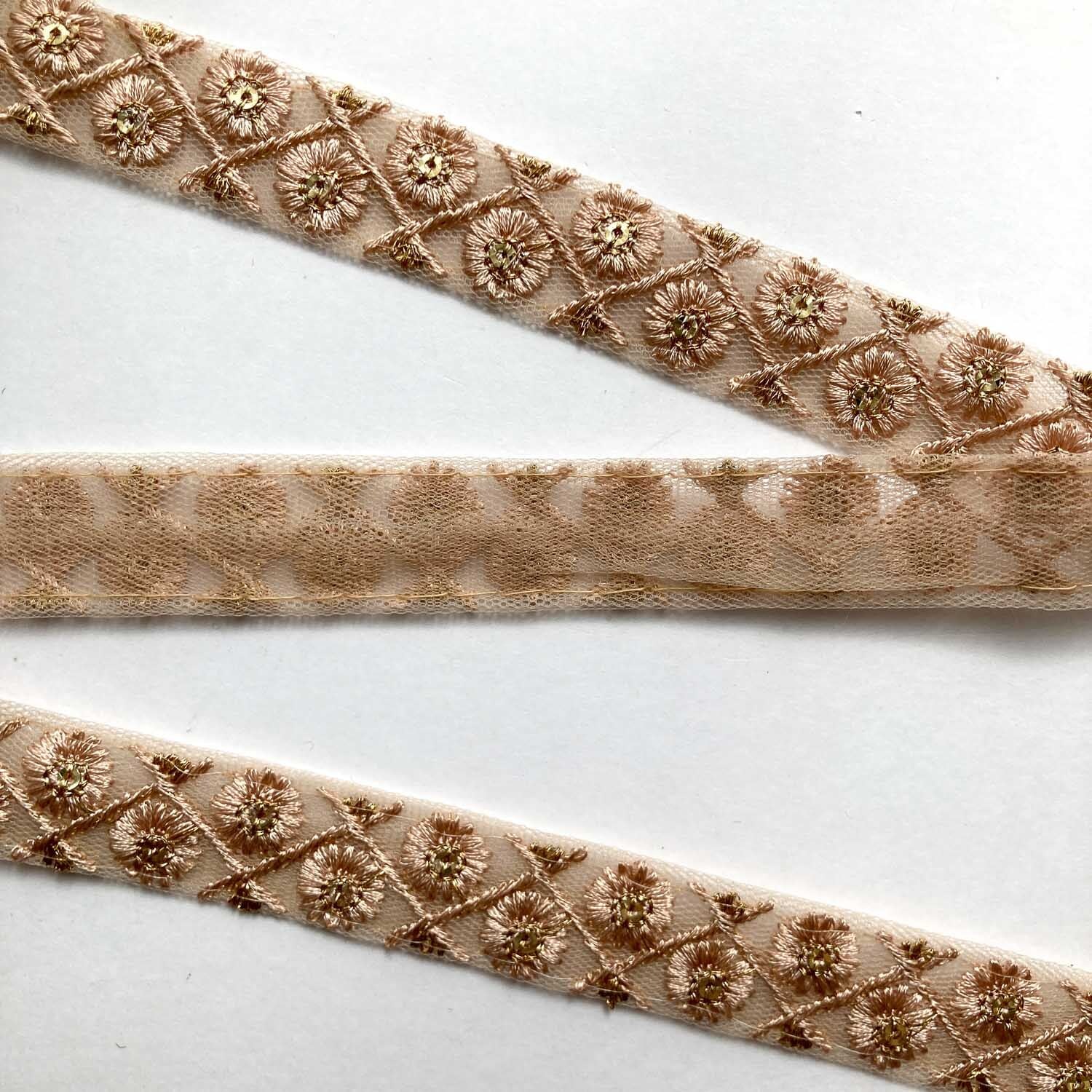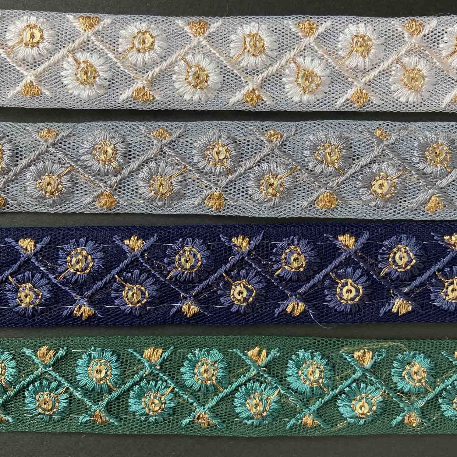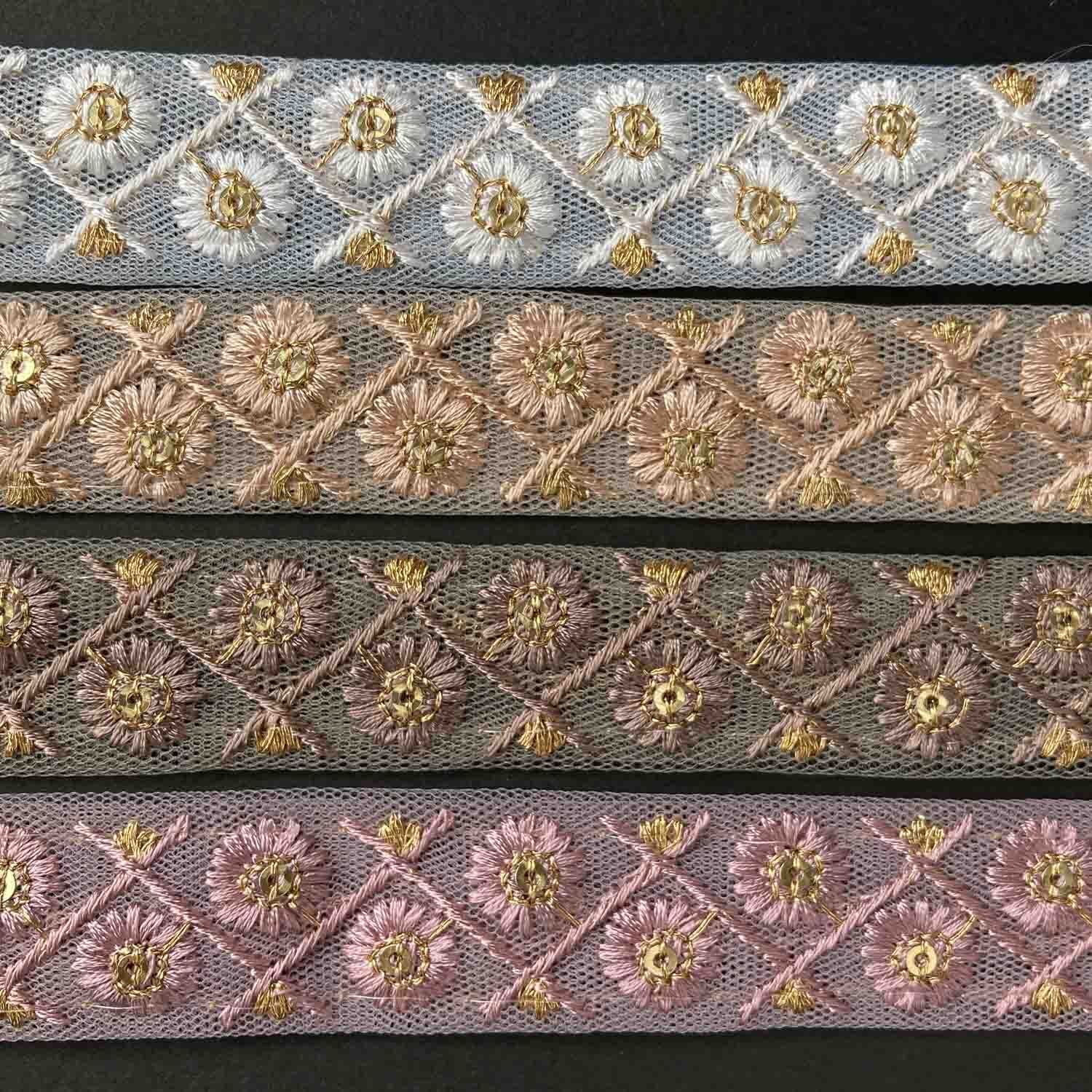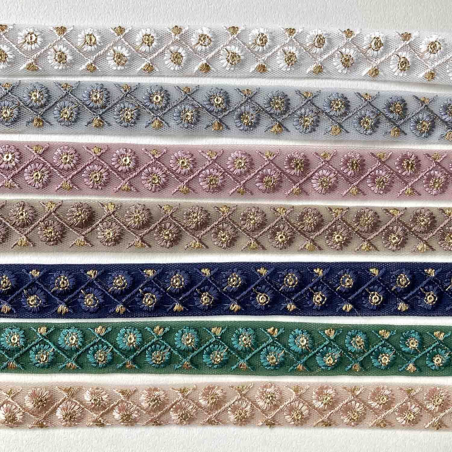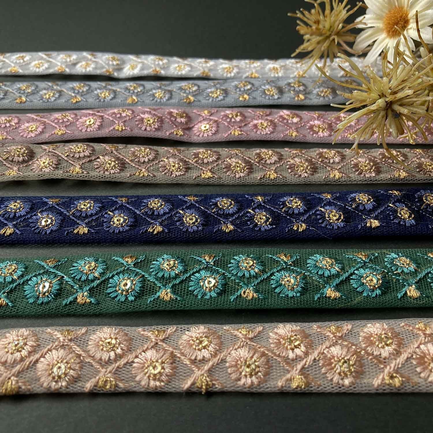 ワントーン小花のインド刺繍チュールレース(50cm〜)