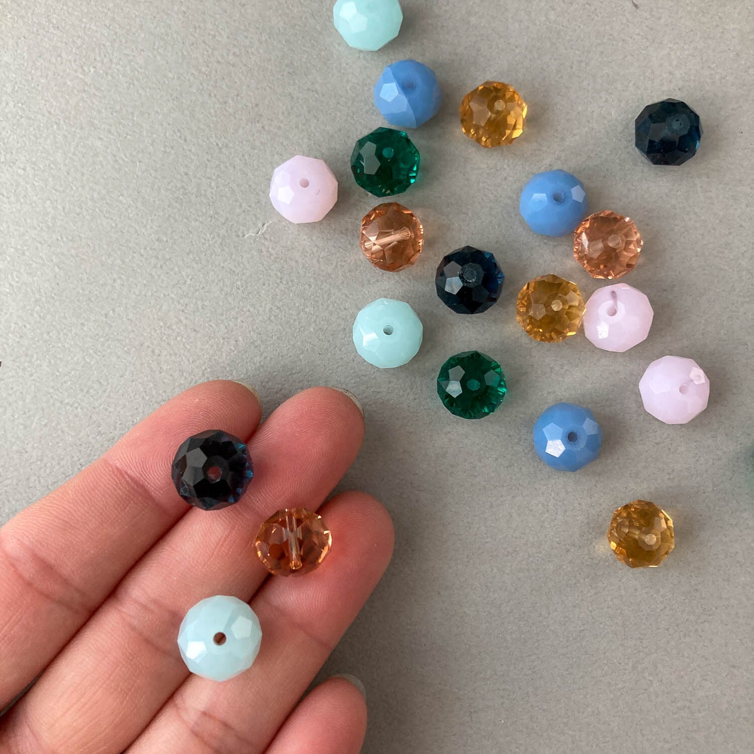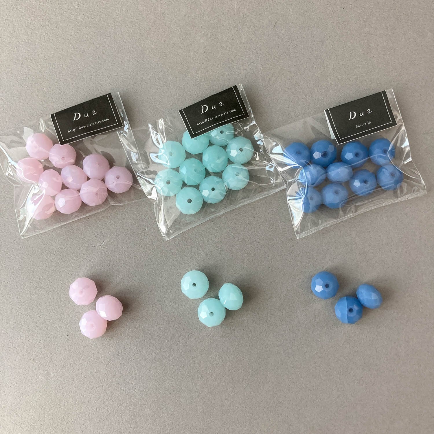 光の反射が美しいボタンカットのガラスビーズパック。