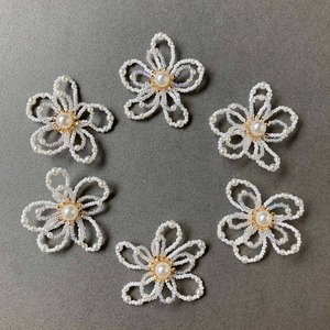 お花のようにビーズが縫い付けられたパーツ。 パール調のビーズとオーロラ調のビーズが混ざっています。 ■販売単位:1個 ■サイズ(縦×横×厚み/奥行):約43×45×10mm ■素材:ビーズ:樹脂、 土台:金属 ■形、大きさに個体差がございます。 ■テグスでぬいつけられており、個体差によってテグスのほつれやはみ出しなどがございます。 ■素材の性質上、バリや欠け、スレ、傷や塗装の剥げがある場合がございます。 予めご了承ください。 ■商品コード:CA2406049
