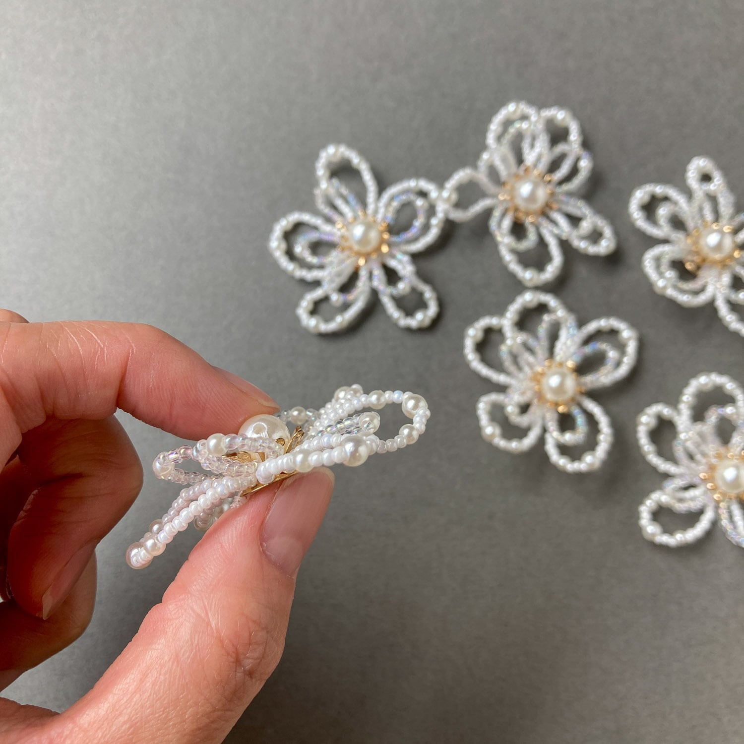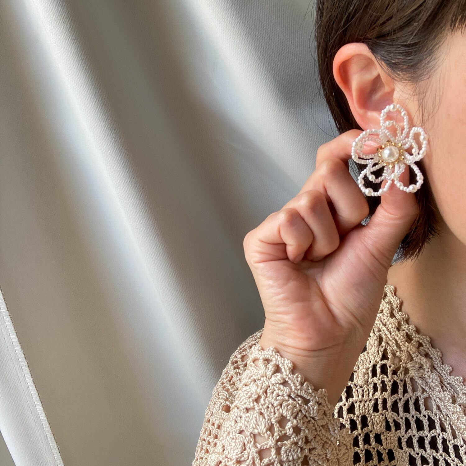 パール調のビーズとオーロラ調のビーズが混ざっています。