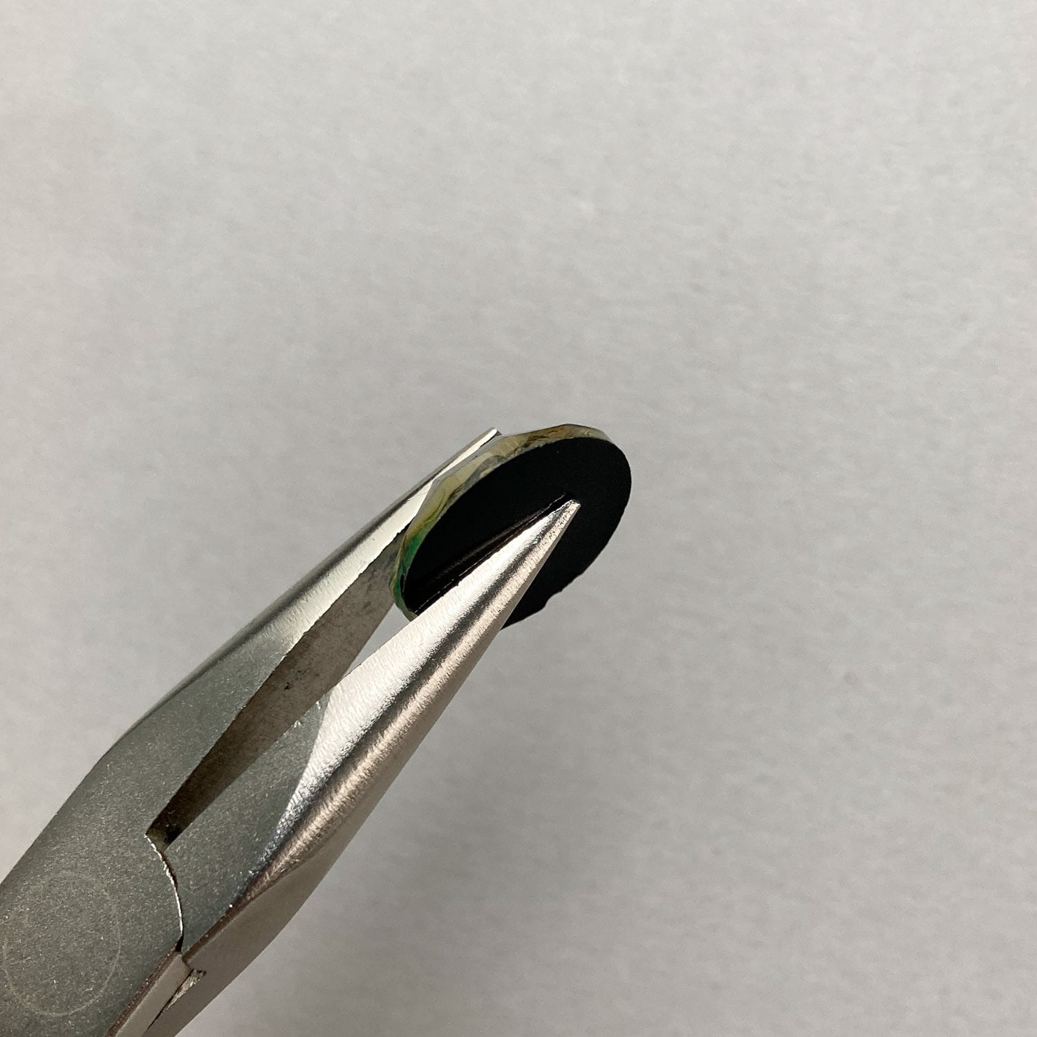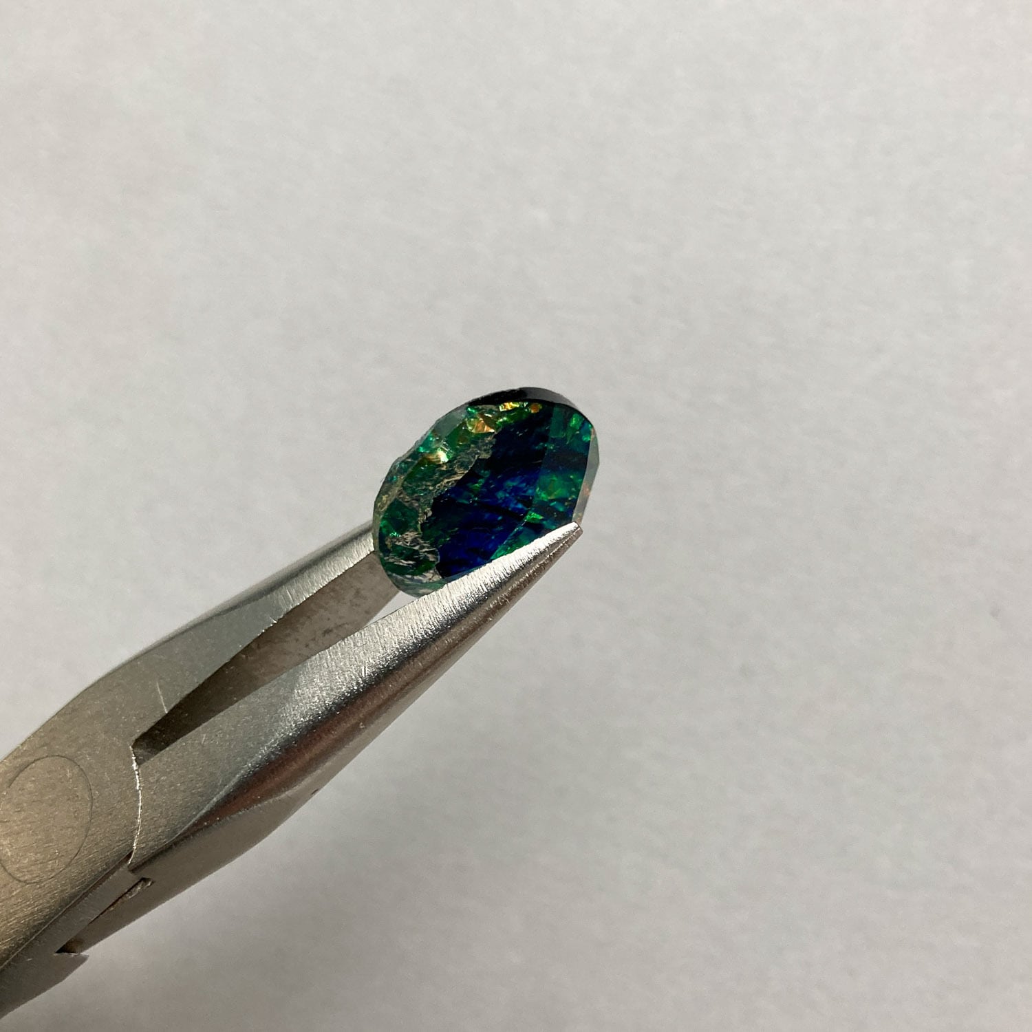 黒に青やグリーンが角度によってきらめくカボションパーツ。