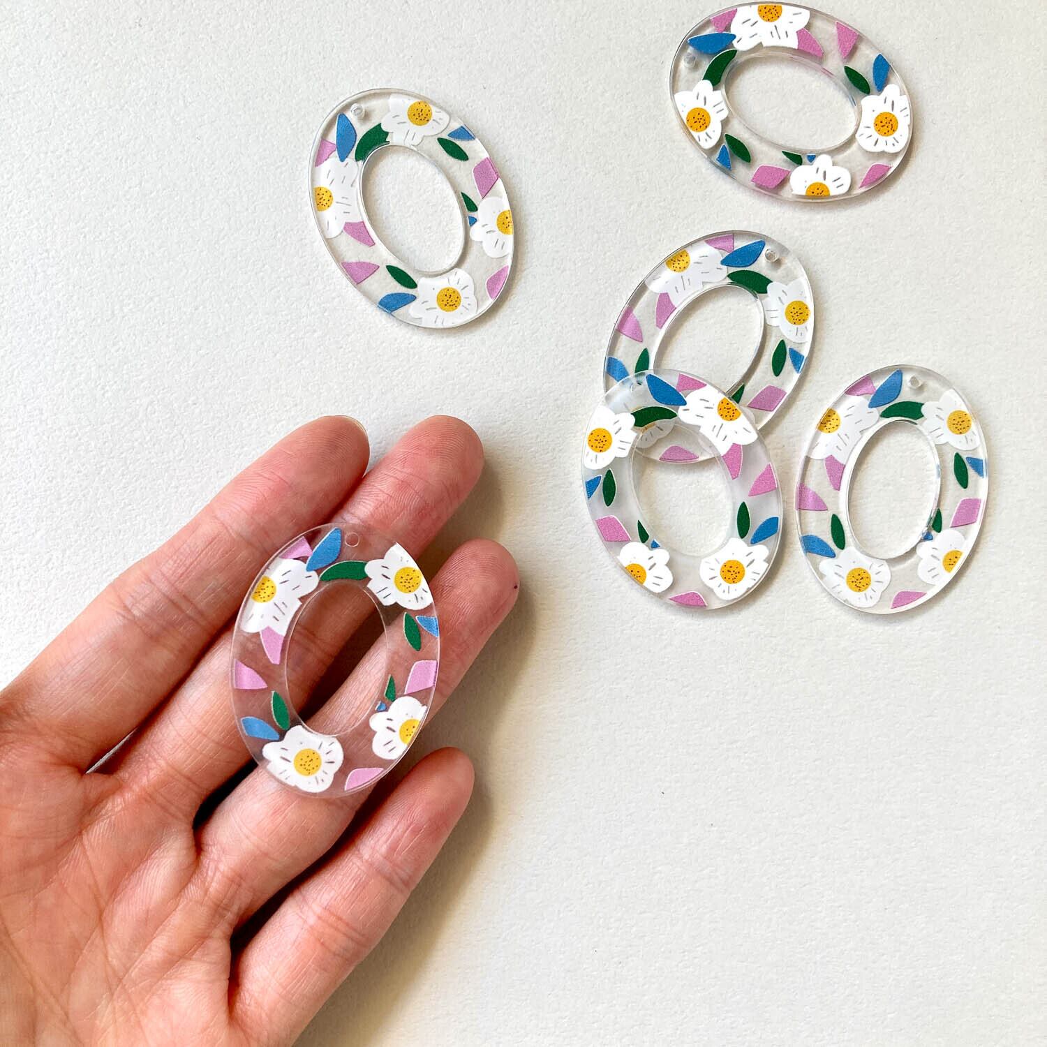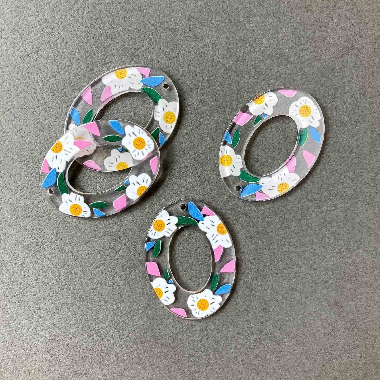 フラワープリントオーバルフープチャーム