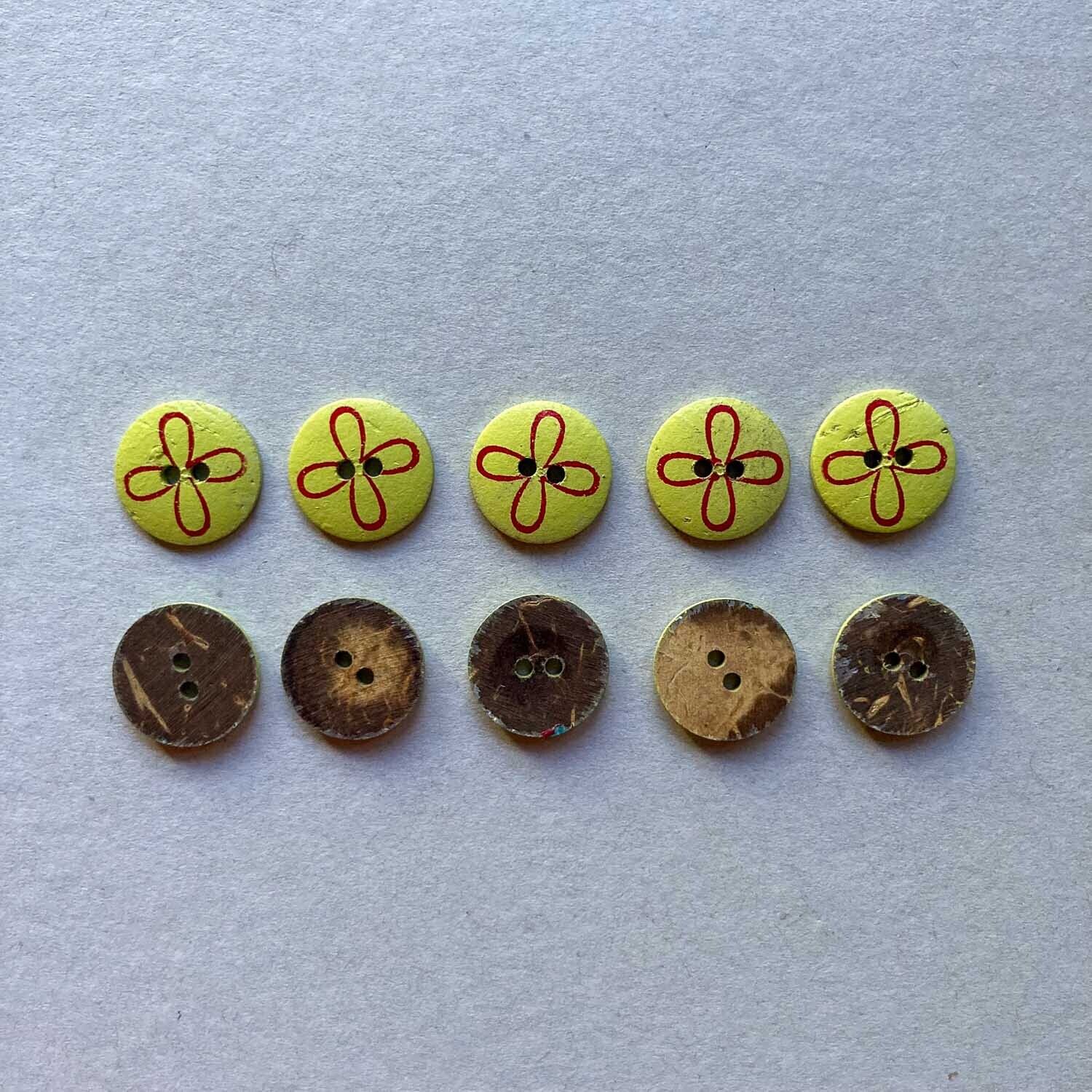 ココナツボタン 黄色×シンプル赤花(15mm)