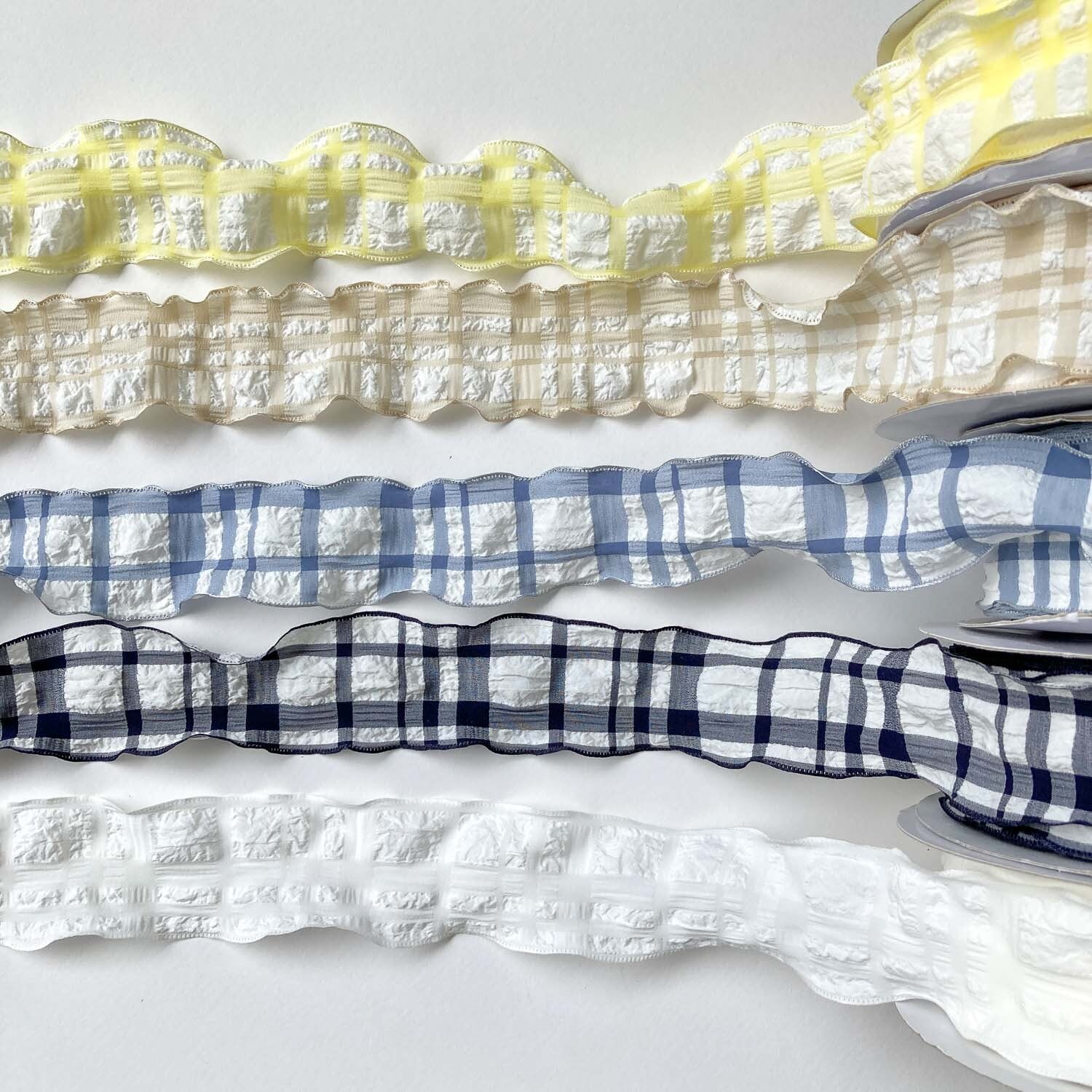 ひらひらとした縁が可愛らしいチェック模様のリボン。