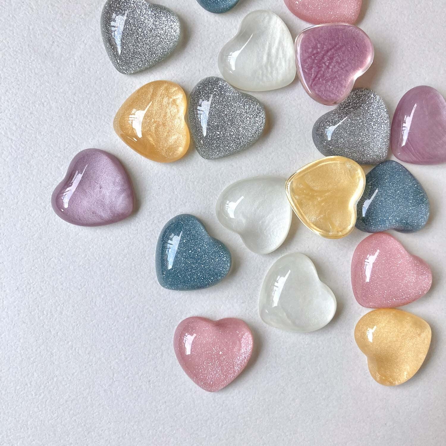 ぷるんとした可愛いハート型のカボション。