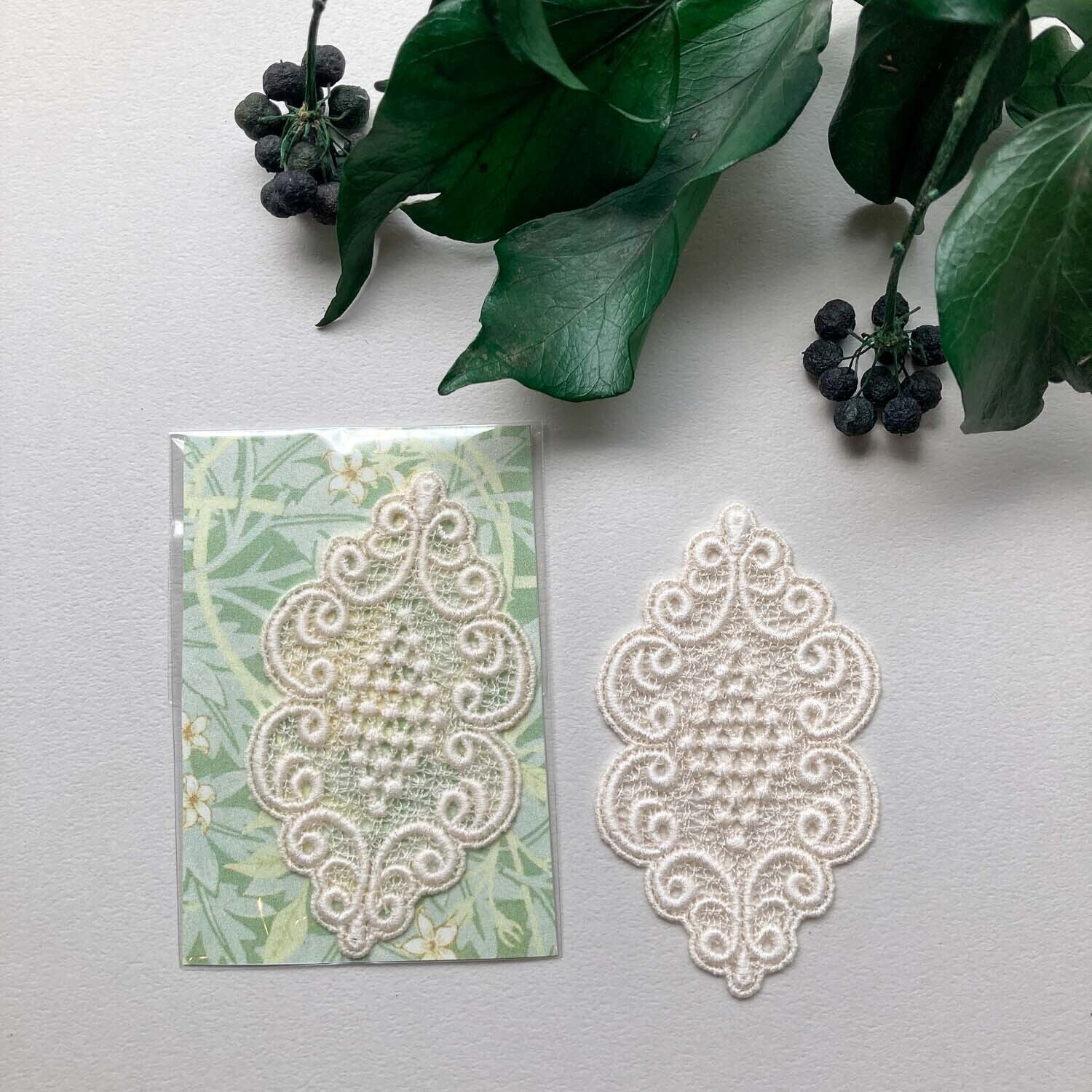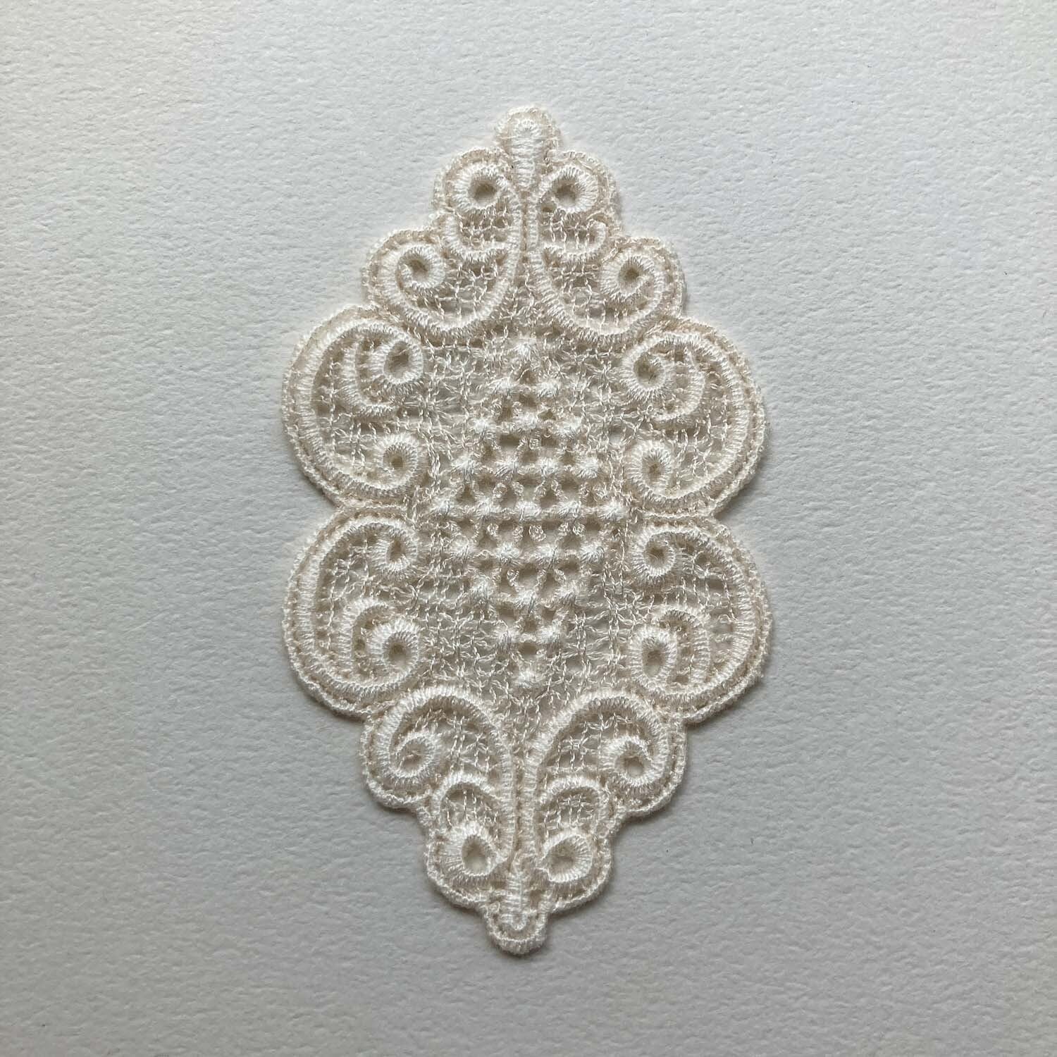 ひし形模様の生成り色レース