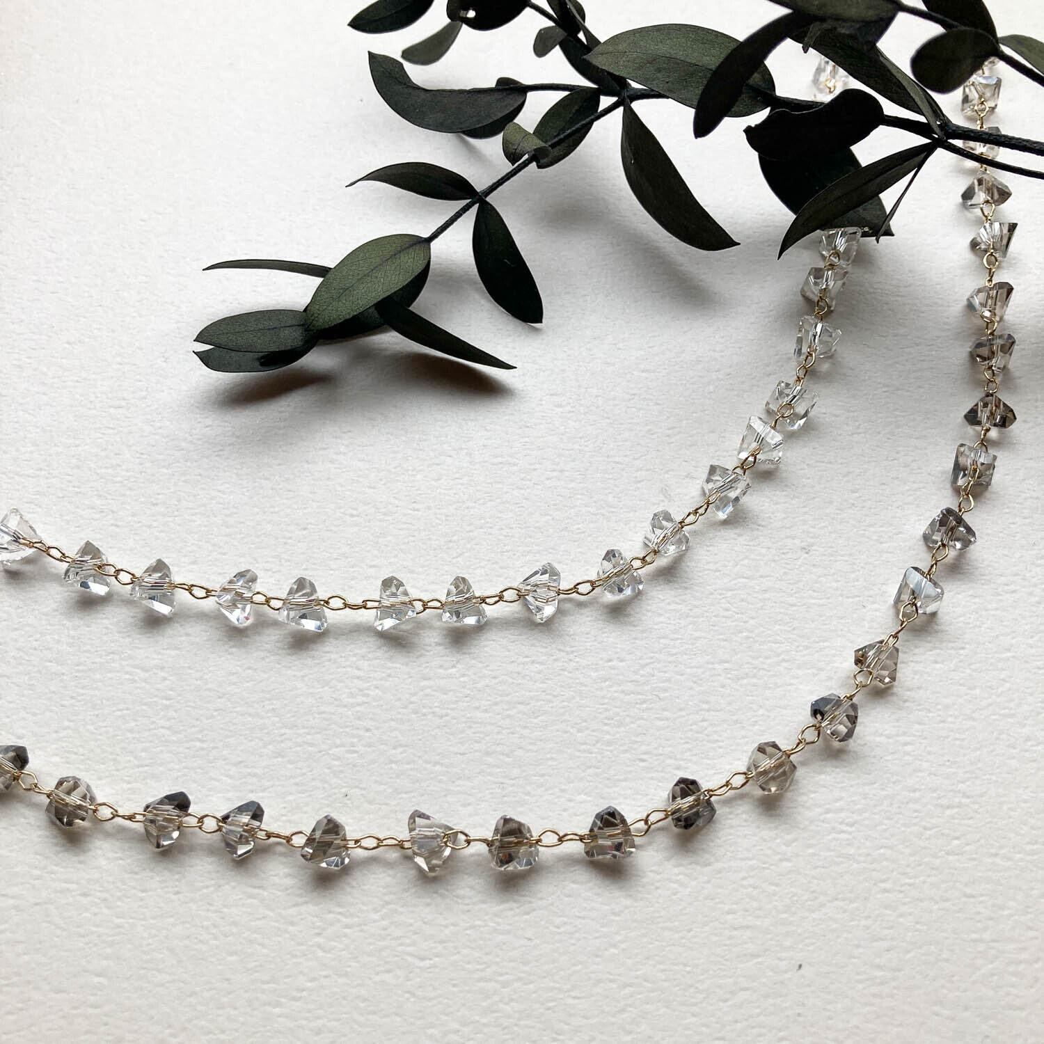 三角カットのビーズがキラッと輝くチェーン。