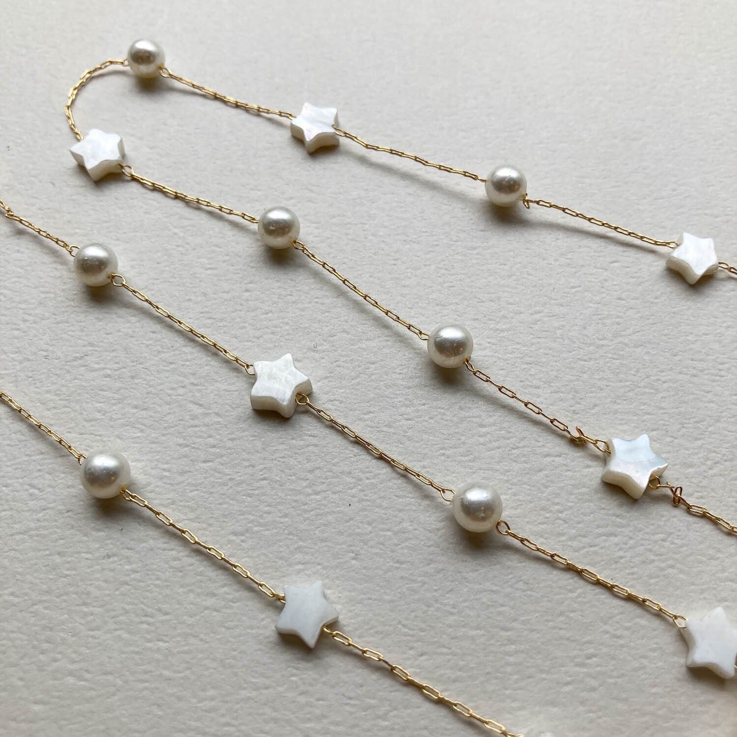 シェル素材の星の光沢とパールが上品な印象のチェーン。