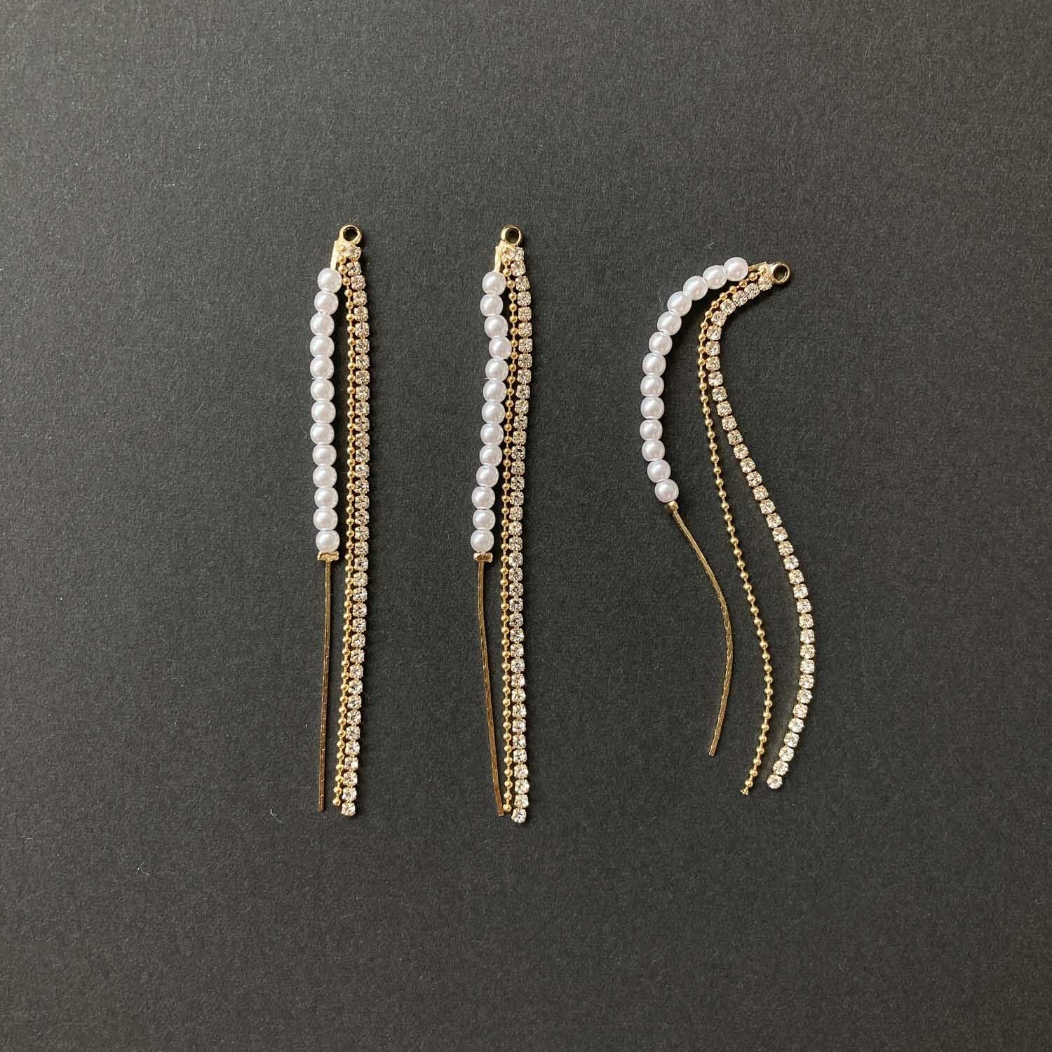 ■サイズ:全長約78mm 、パール直径約 3mm、ラインストーン幅約1.5mm、カンの内径約2mm