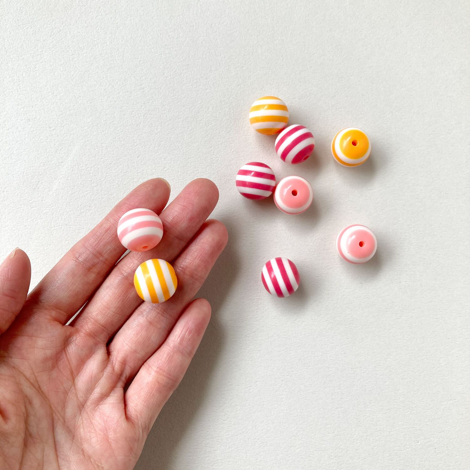 ストライプでポップな雰囲気のカラービーズ。 大きめサイズは、存在感たっぷりのアクセサリー作りや アクセントととして、ポイント使いにもおすすめです。 ■販売単位:1個 ■種類:A濃いピンク、B薄ピンク、Cオレンジ ■サイズ(縦×横×厚み/奥行):約14×15×15mm ■素材:樹脂 ■素材の性質上、スレ、傷、凹みがある部分や、汚れがある場合がございます。 予めご了承ください。 ■商品コード:BE2301114